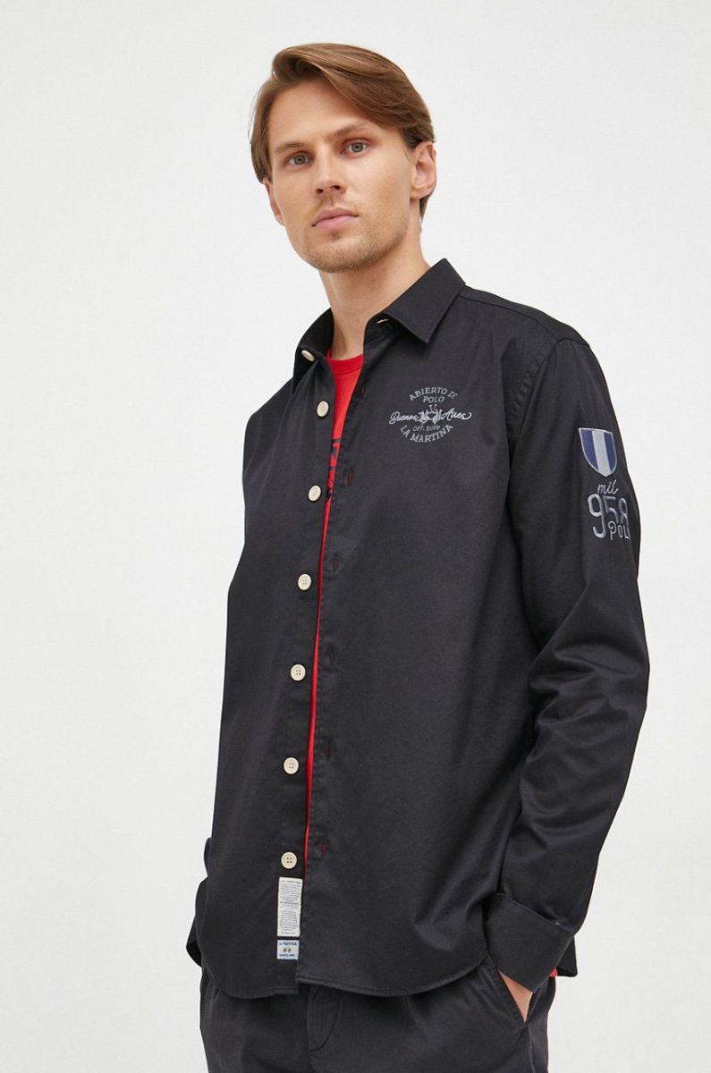 Бавовняна сорочка La Martina чоловіча колір чорний regular класичний комір