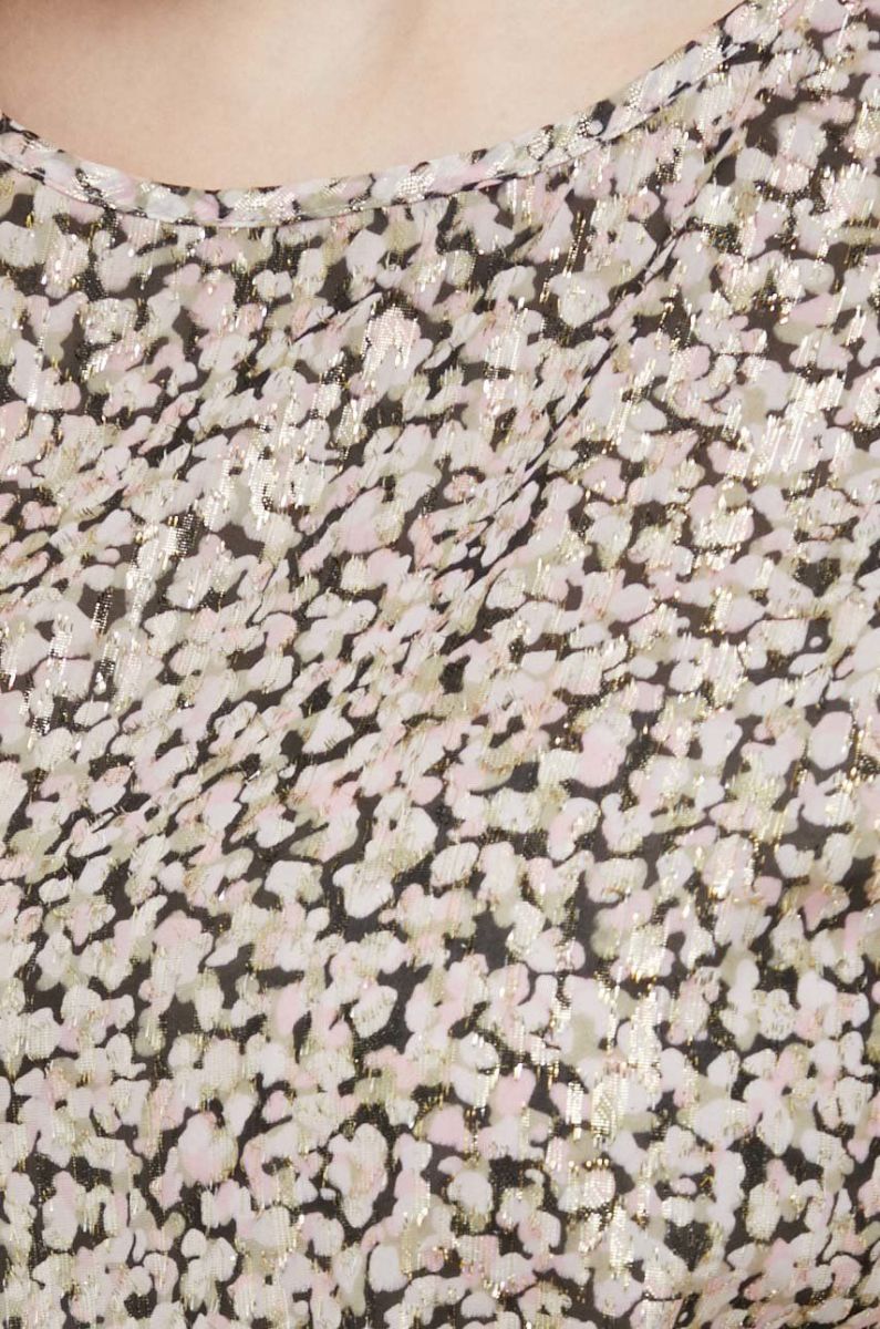 Блузка із колекції Liu Jo. Модель виготовлена із узорної тканини. Має круглий виріз.