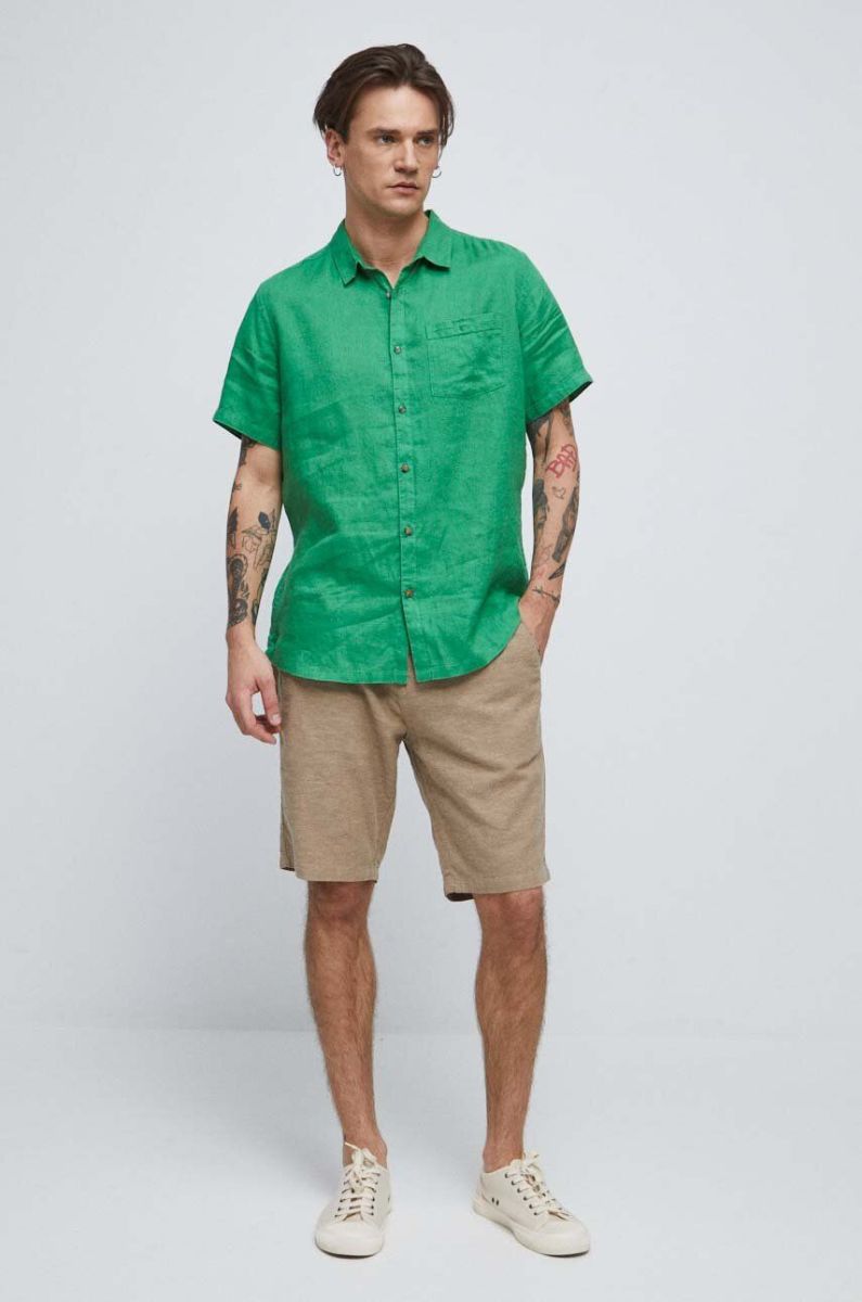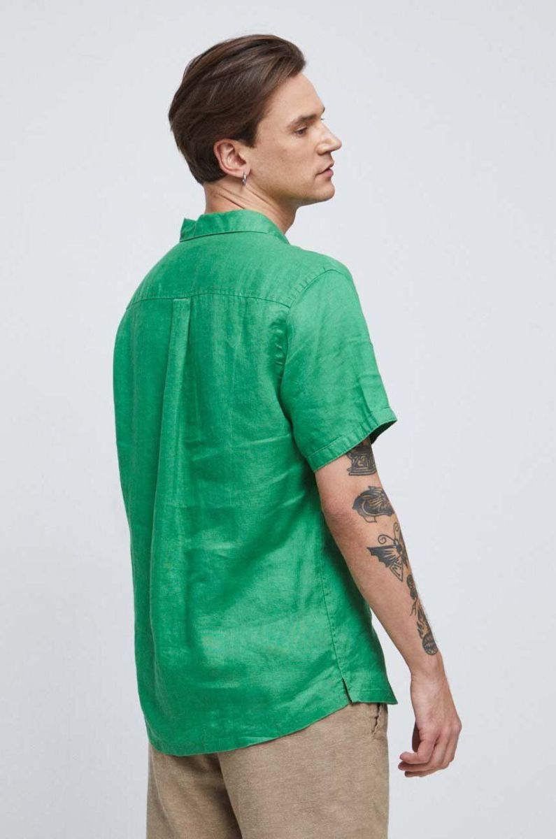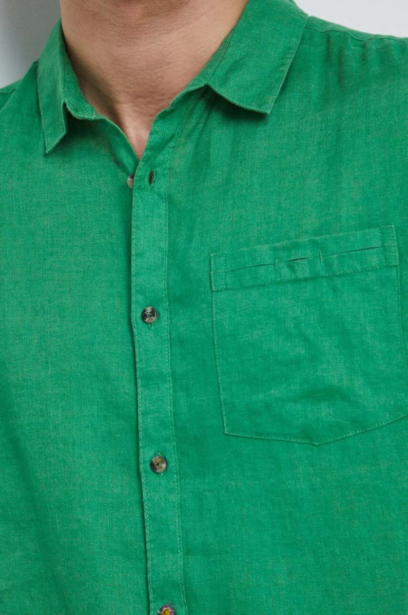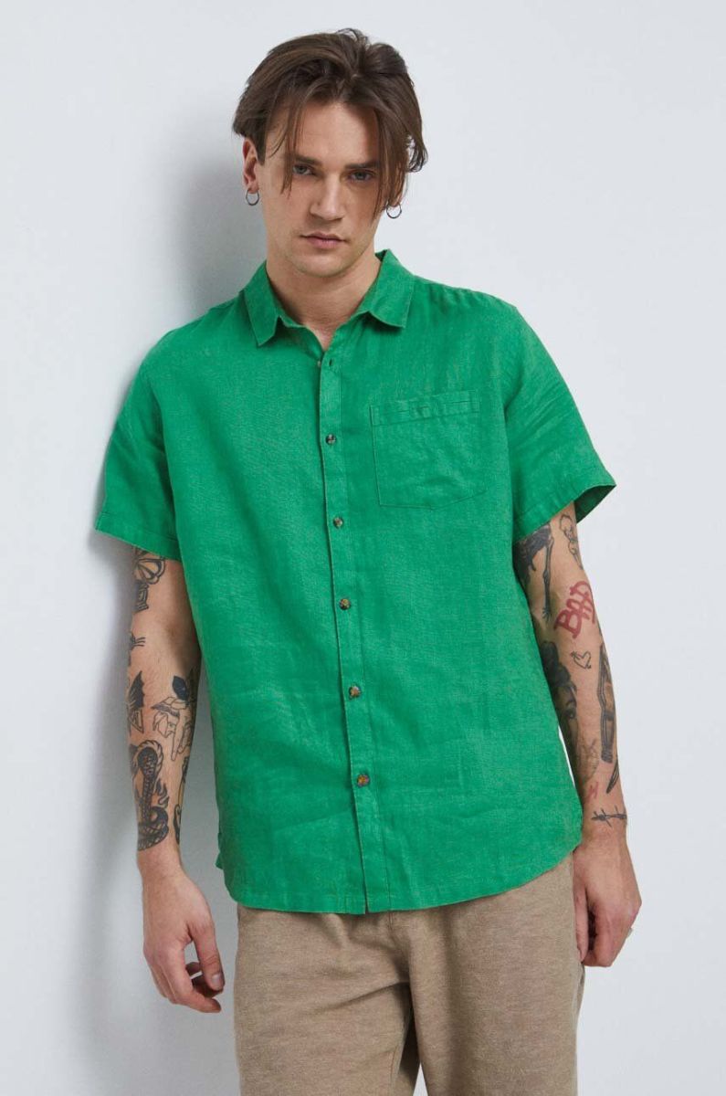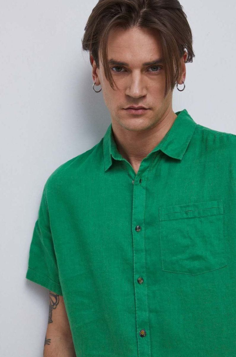 Сорочка з льону Medicine колір зелений regular класичний комір (3210049)
