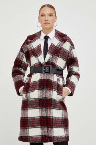 Вовняне пальто Liu Jo колір бордовий перехідний