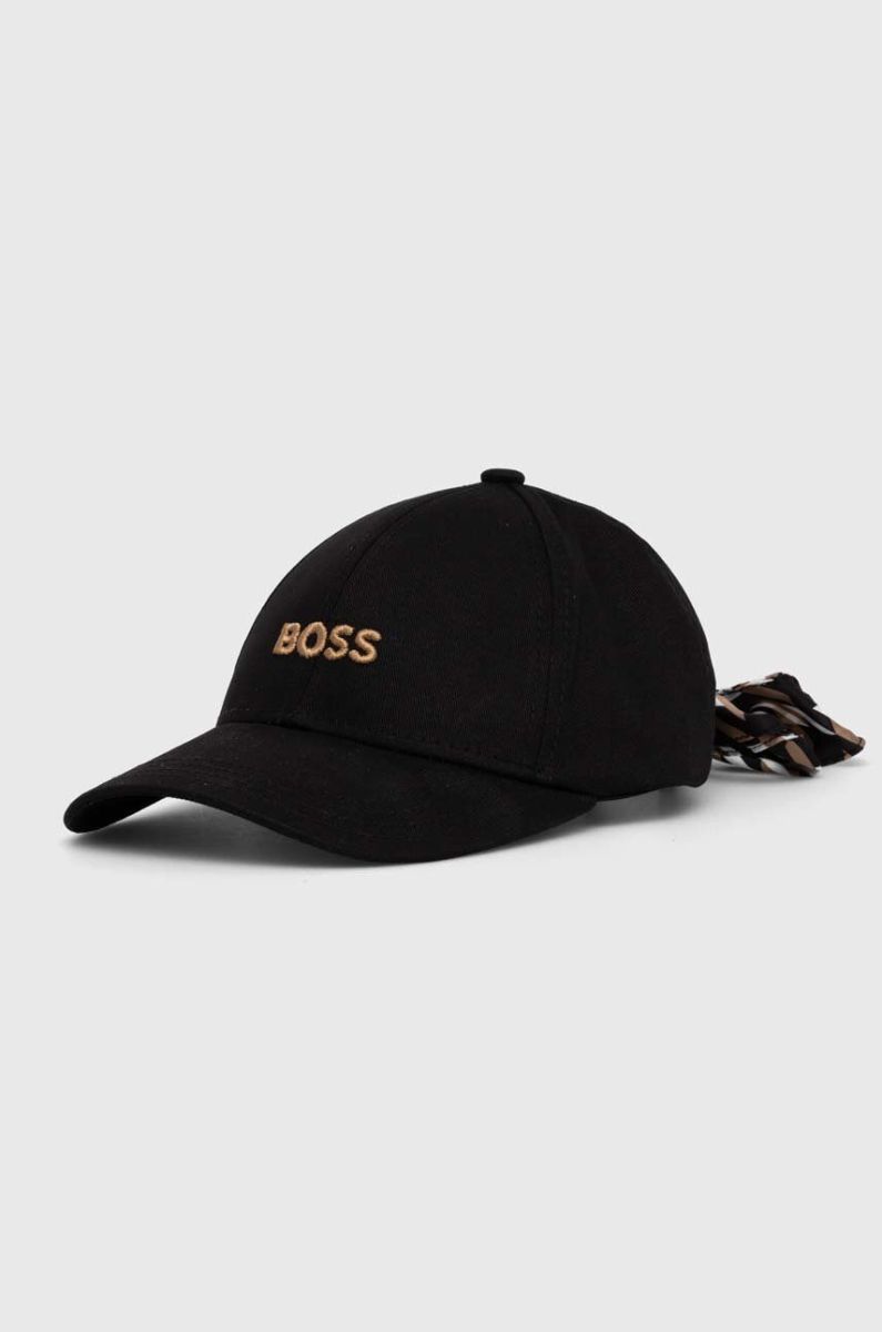 Бавовняна бейсболка BOSS колір чорний з аплікацією (3394000)