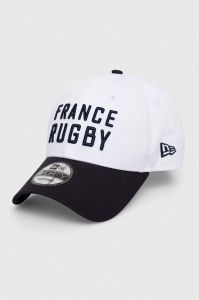 Бавовняна бейсболка New Era колір білий з аплікацією FRENCH FEDERATION OF RUGBY