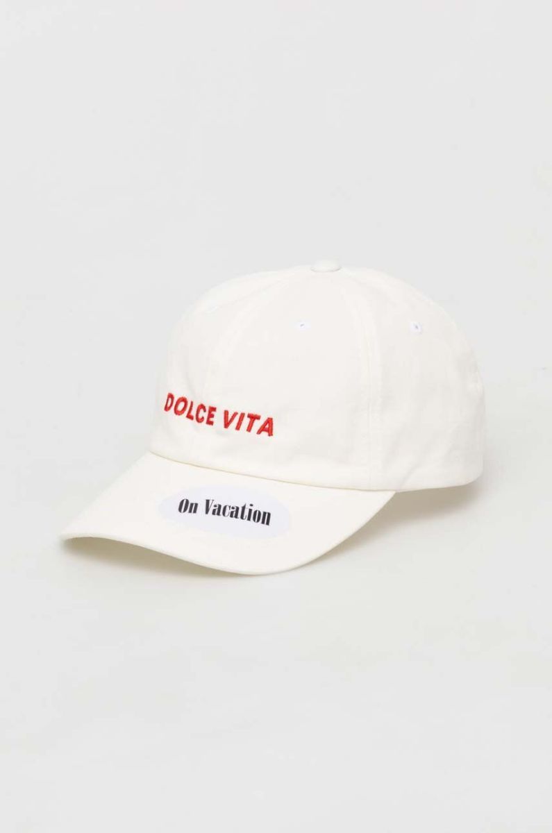 Бавовняна бейсболка On Vacation колір бежевий з аплікацією Один розмір