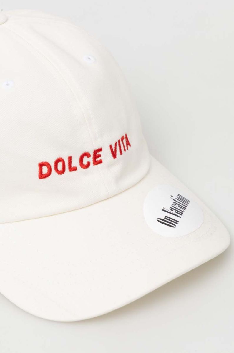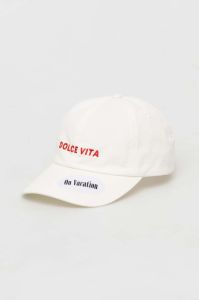 Бавовняна бейсболка On Vacation колір бежевий з аплікацією