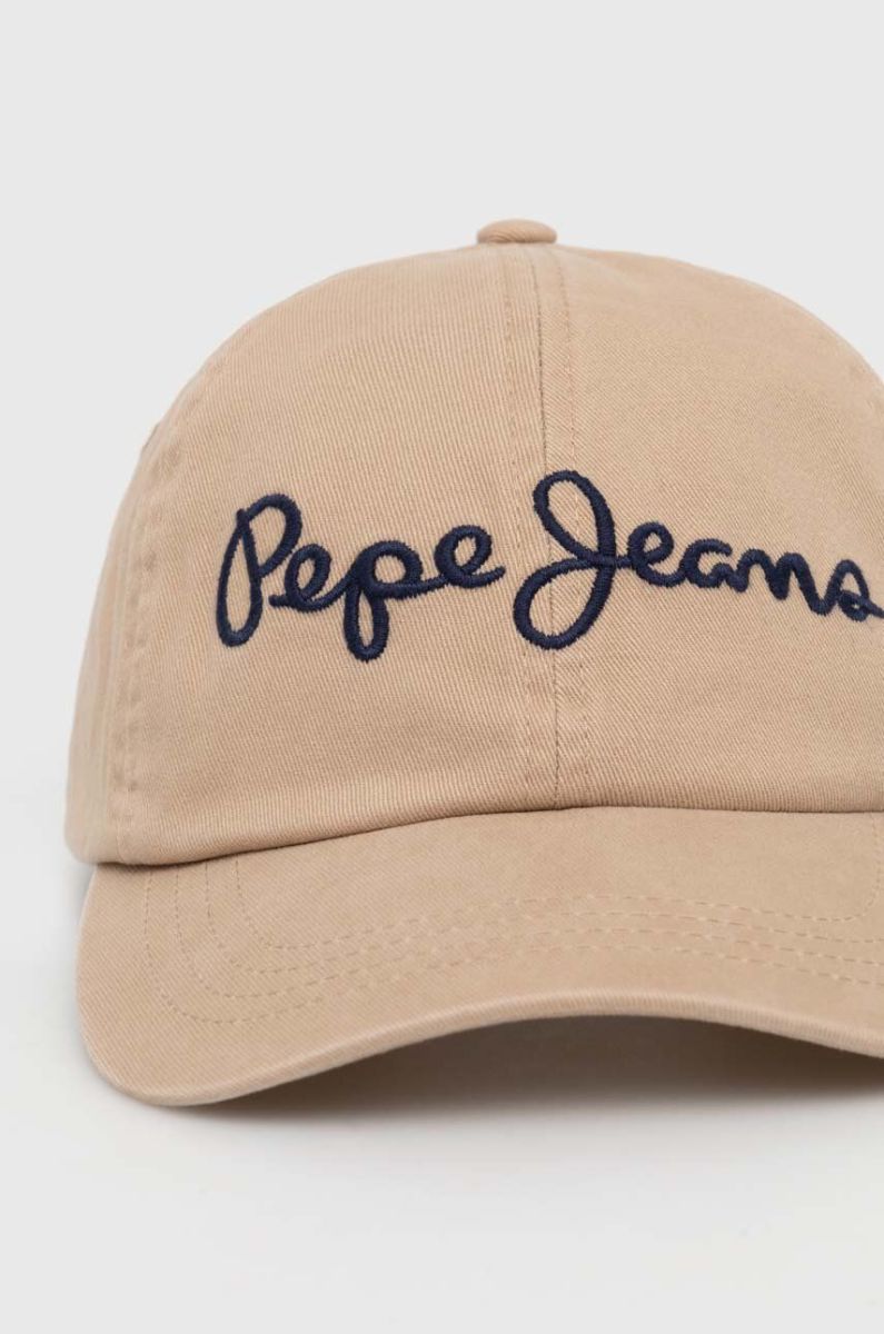 Бавовняна бейсболка Pepe Jeans Gilbert колір бежевий з аплікацією Один розмір