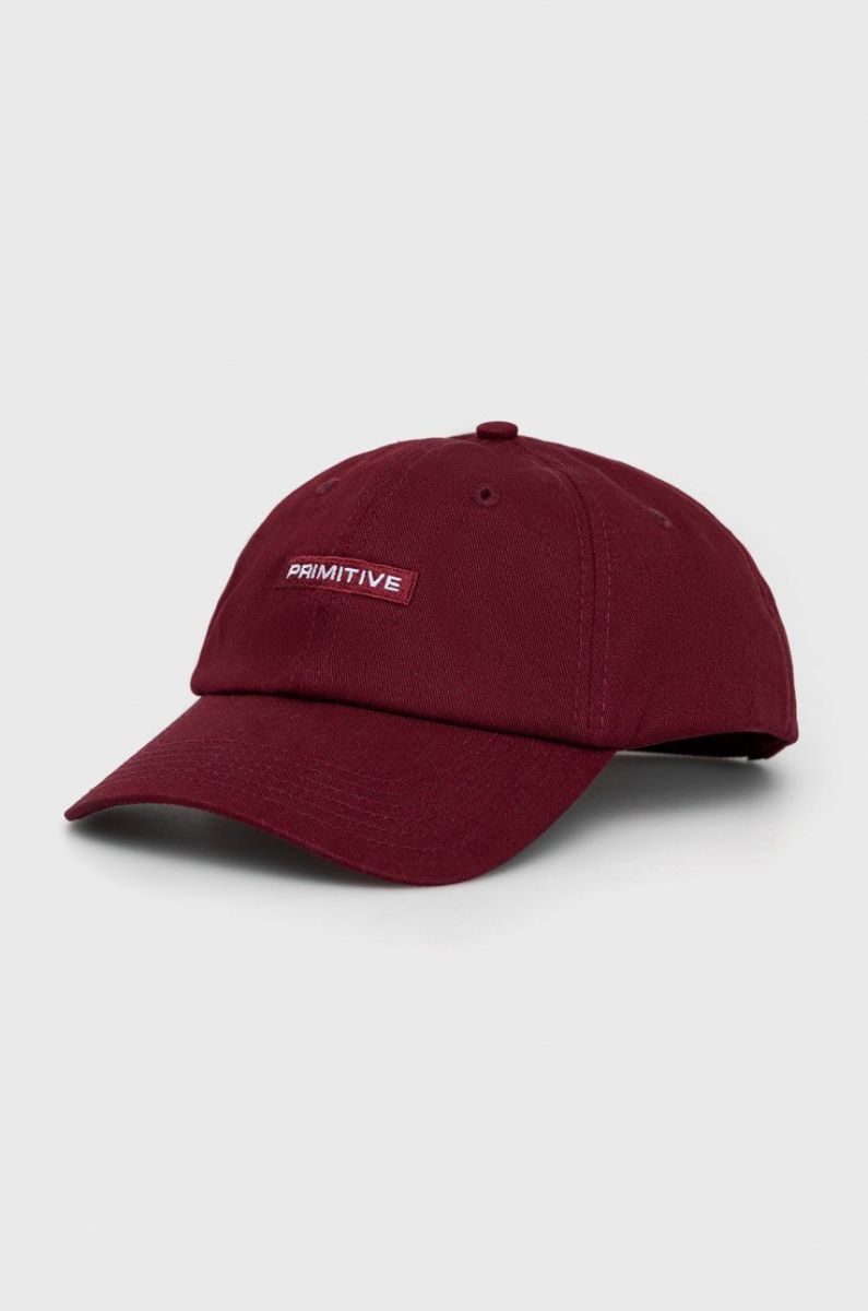 Бавовняна бейсболка Primitive колір бордовий однотонна Один розмір