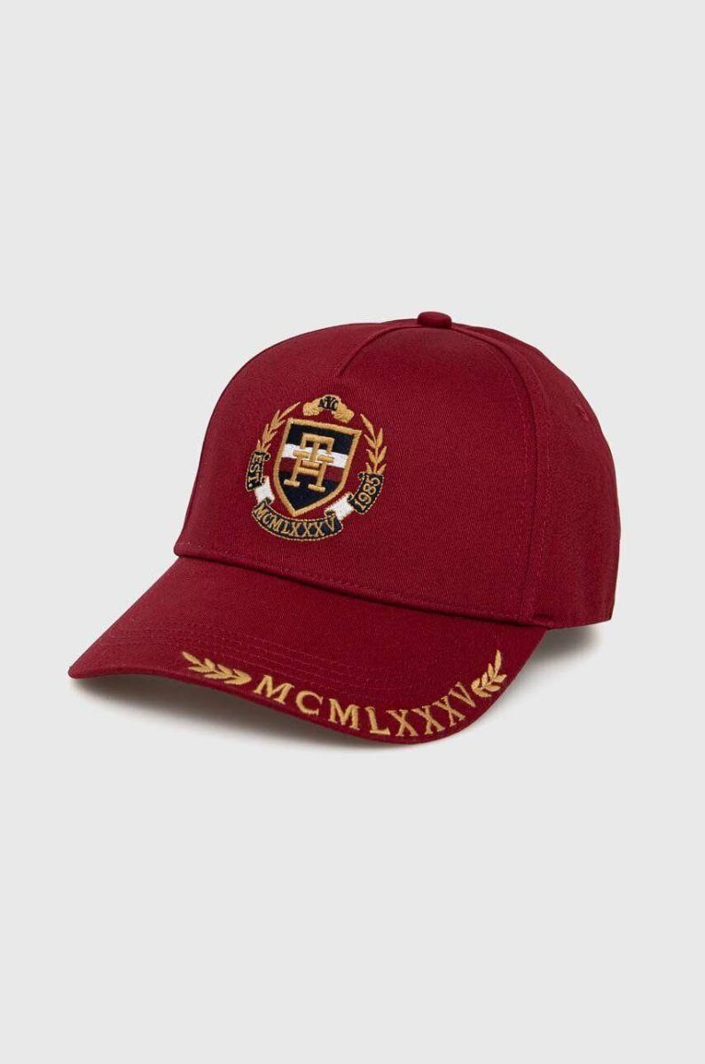 Бавовняна бейсболка Tommy Hilfiger колір бордовий з аплікацією Один розмір