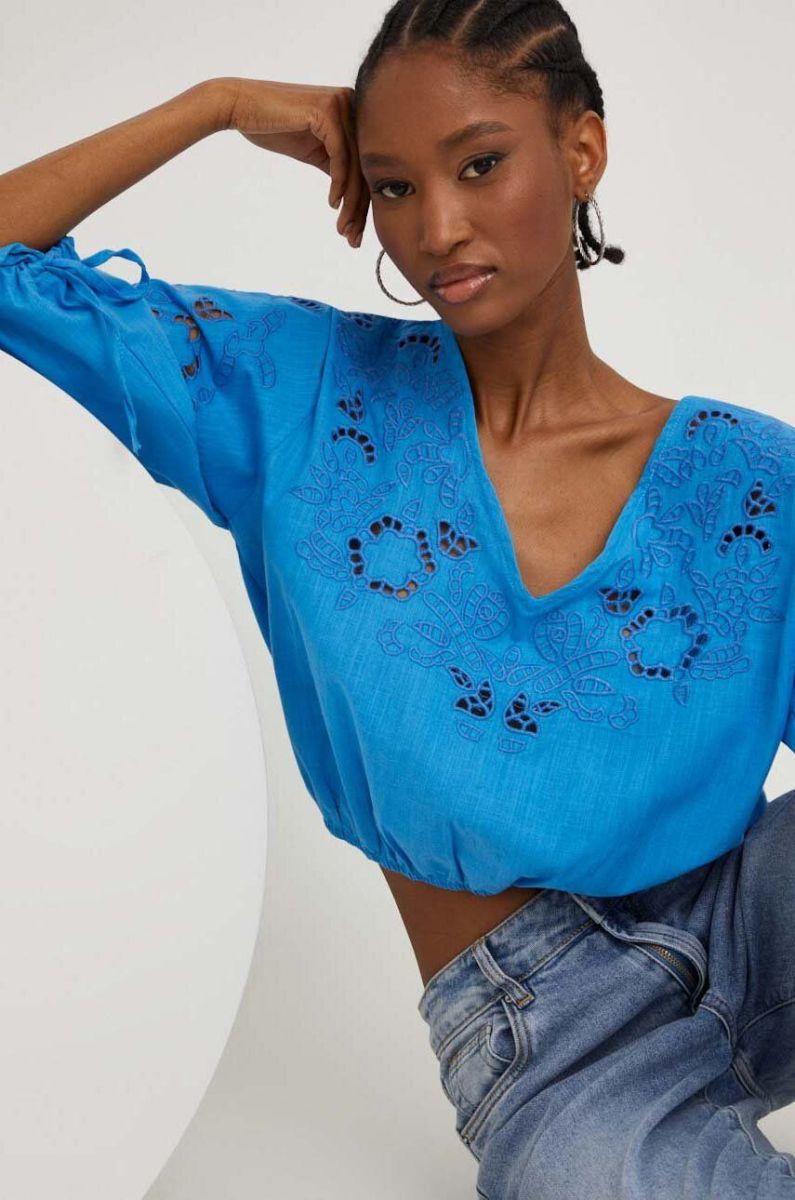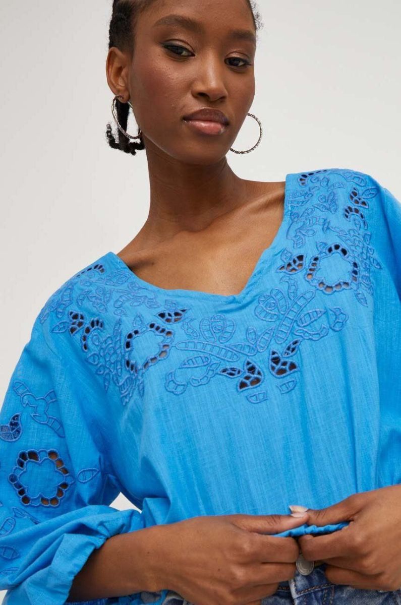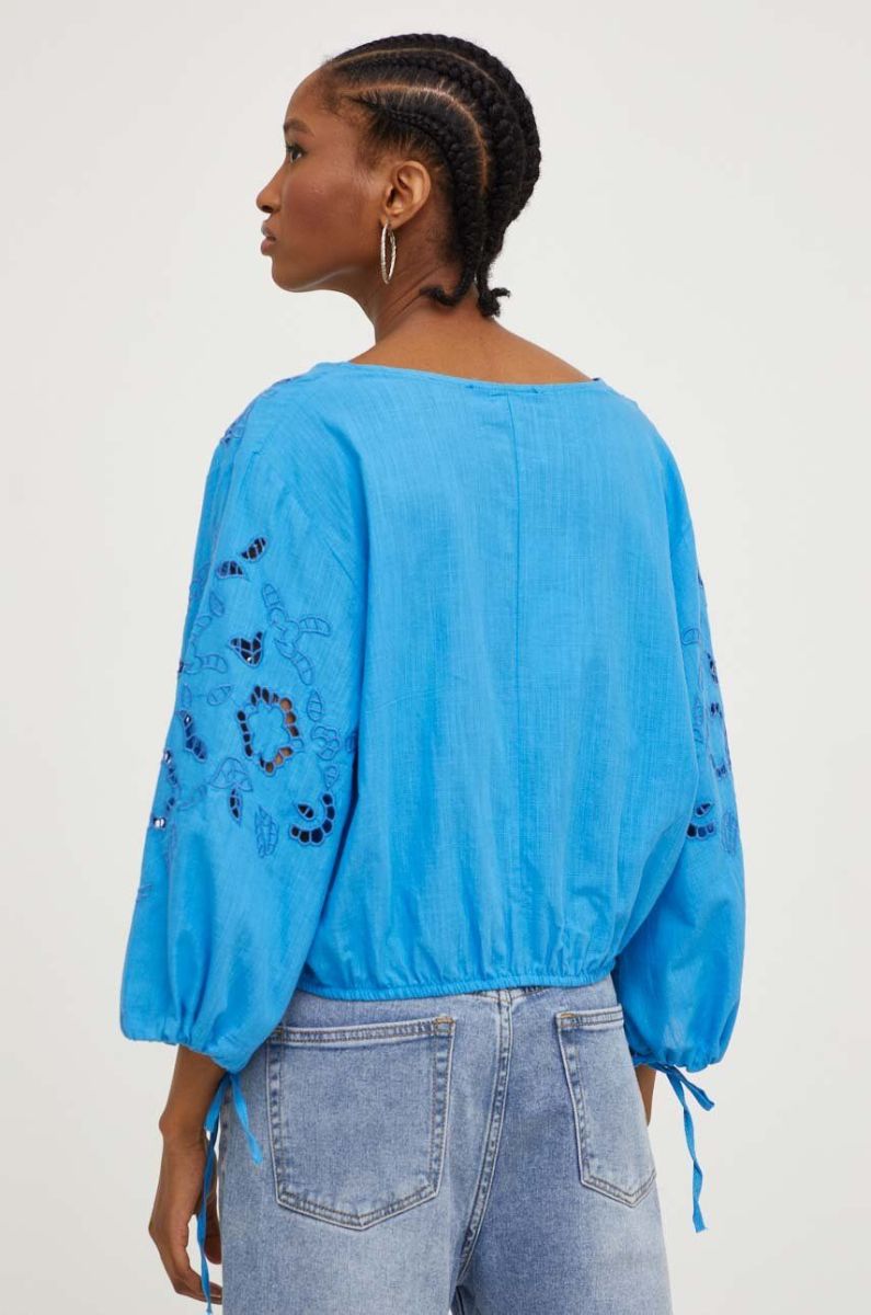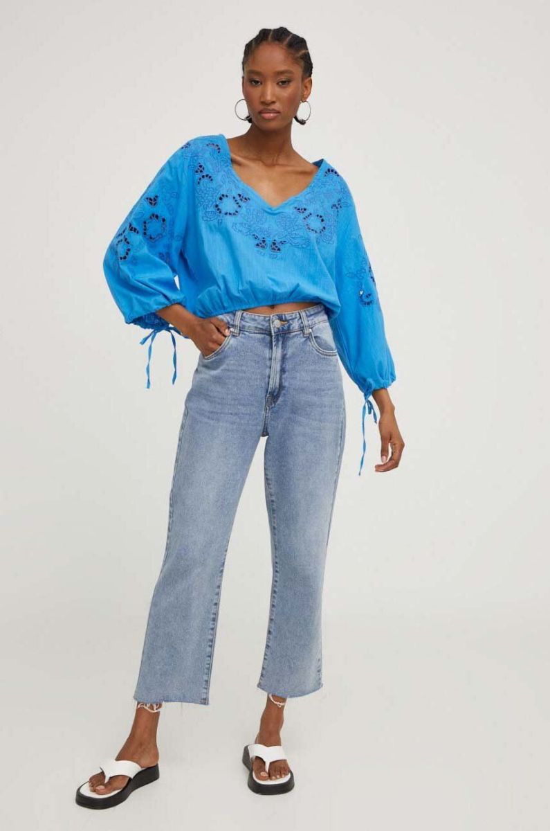 Бавовняна блузка Answear Lab жіноча з аплікацією колір блакитний