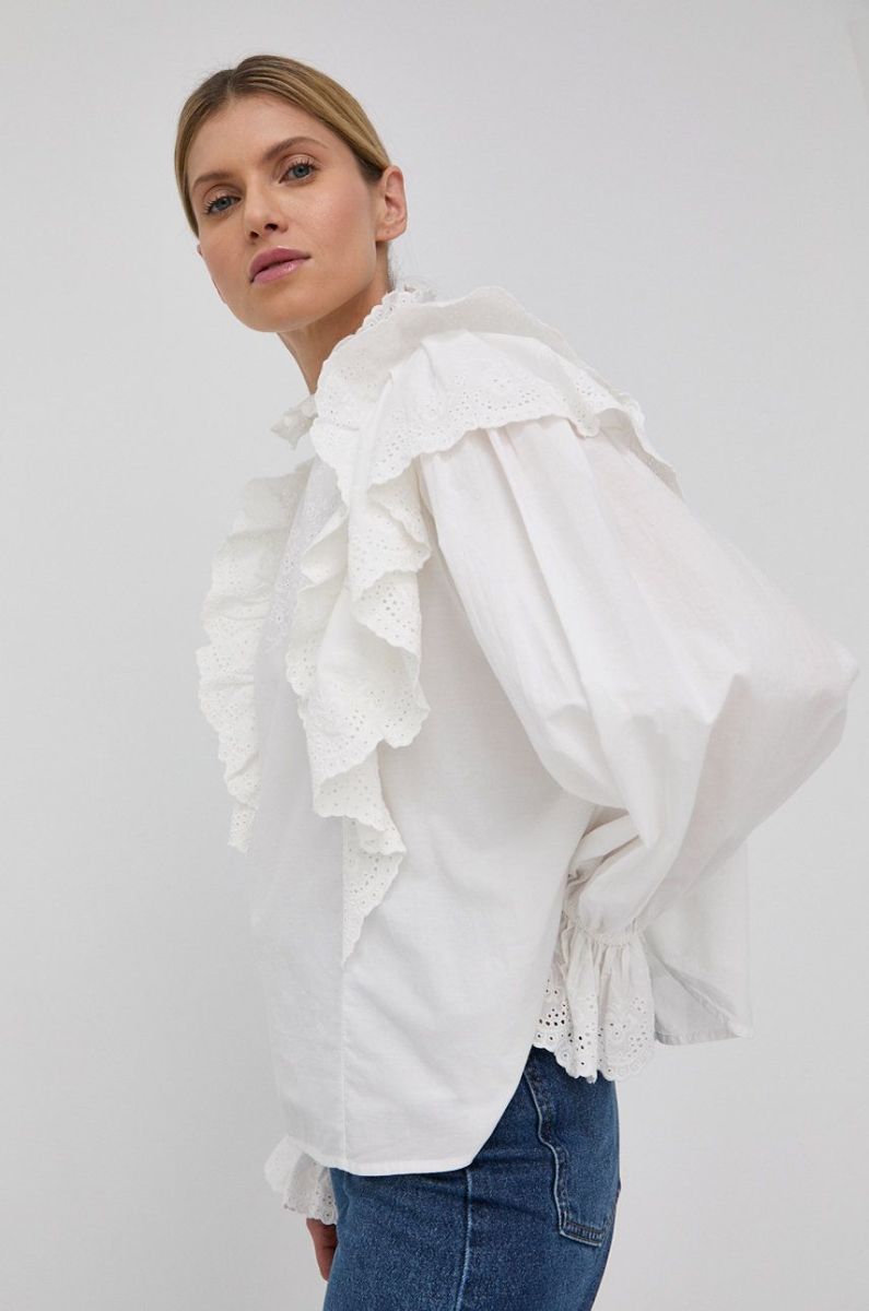Бавовняна блузка Notes du Nord Bibi жіноча колір кремовий гладка