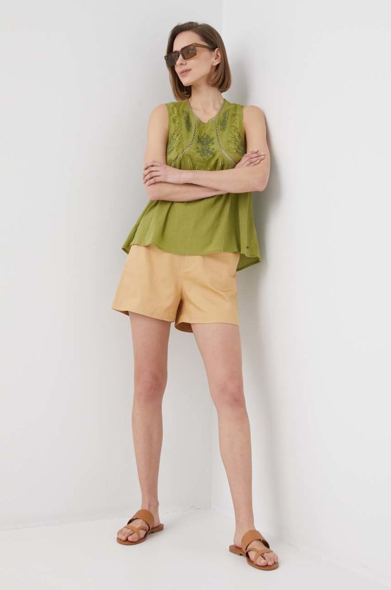 Бавовняна блузка Pepe Jeans Lisle жіноча колір зелений з аплікацією