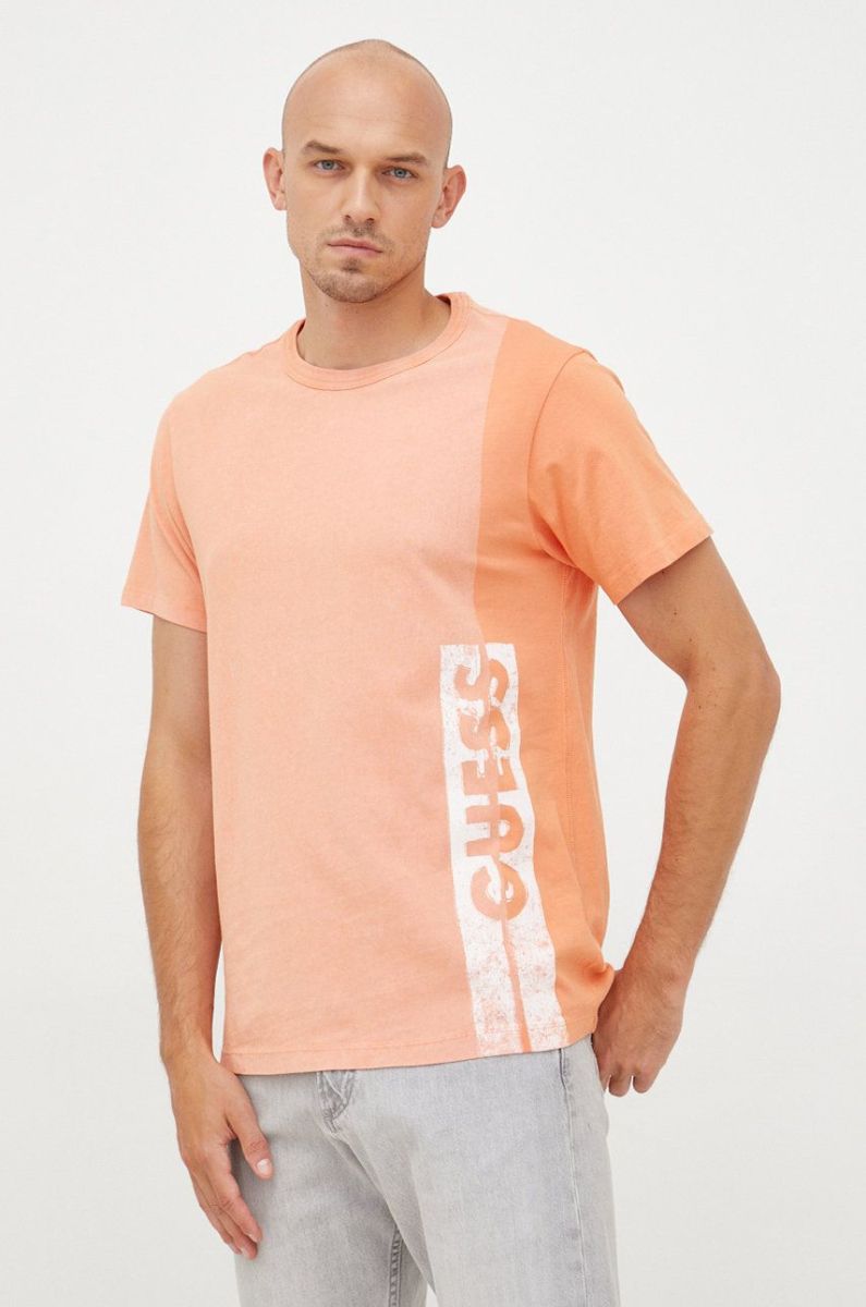 Бавовняна футболка Guess колір помаранчевий з принтом (2504223)