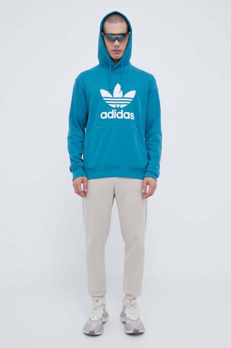 Бавовняна кофта adidas Originals чоловіча колір бірюзовий з капюшоном з принтом
