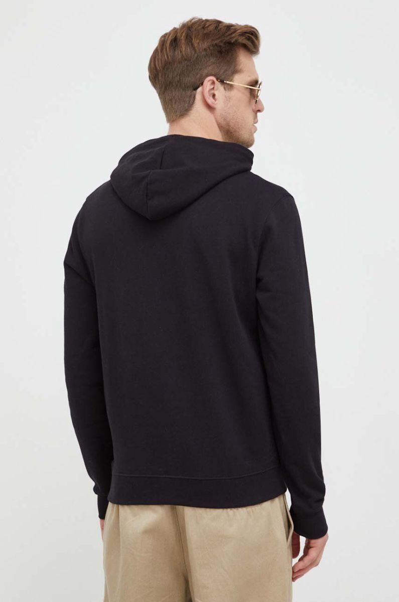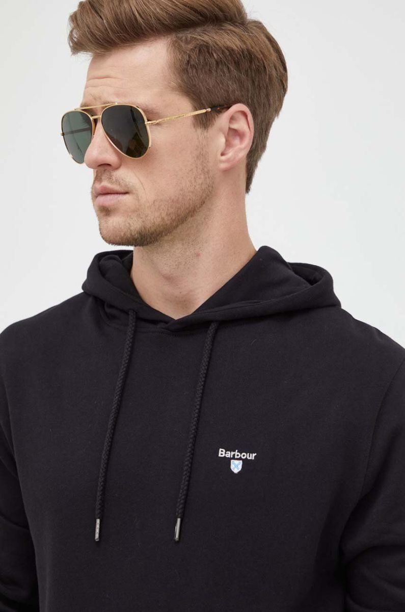 Бавовняна кофта Barbour чоловіча колір чорний з капюшоном однотонна