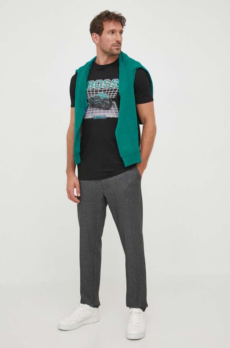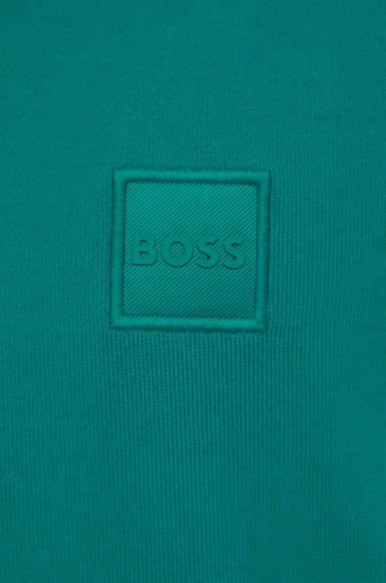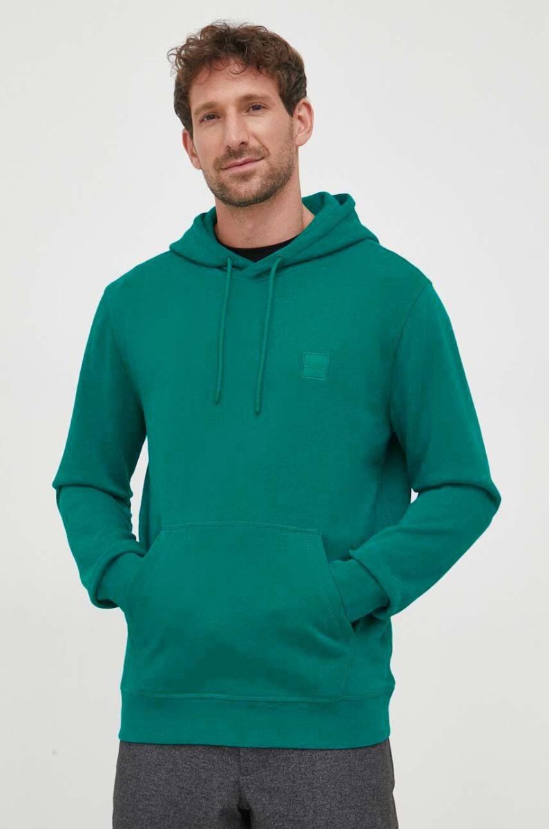 Бавовняна кофта BOSS BOSS CASUAL чоловіча колір зелений з капюшоном однотонна