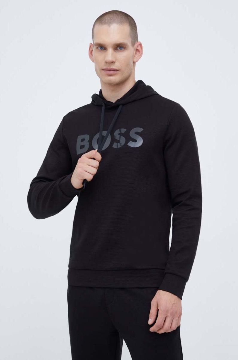Бавовняна кофта Boss Green BOSS GREEN чоловіча колір чорний з капюшоном з принтом