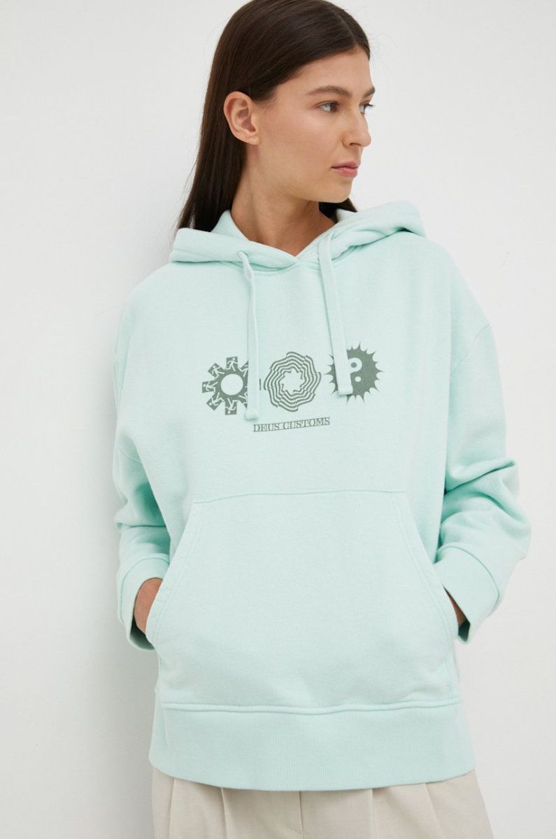 Бавовняна кофта Deus Ex Machina жіноча колір бірюзовий з принтом