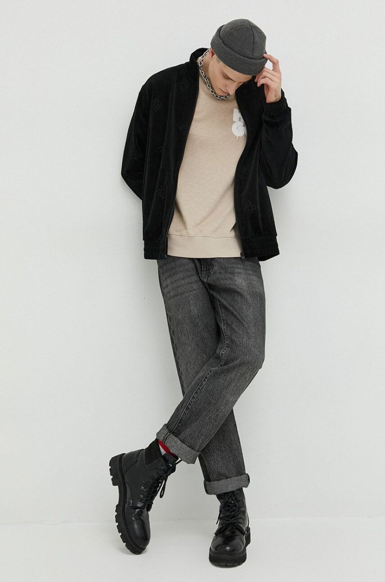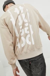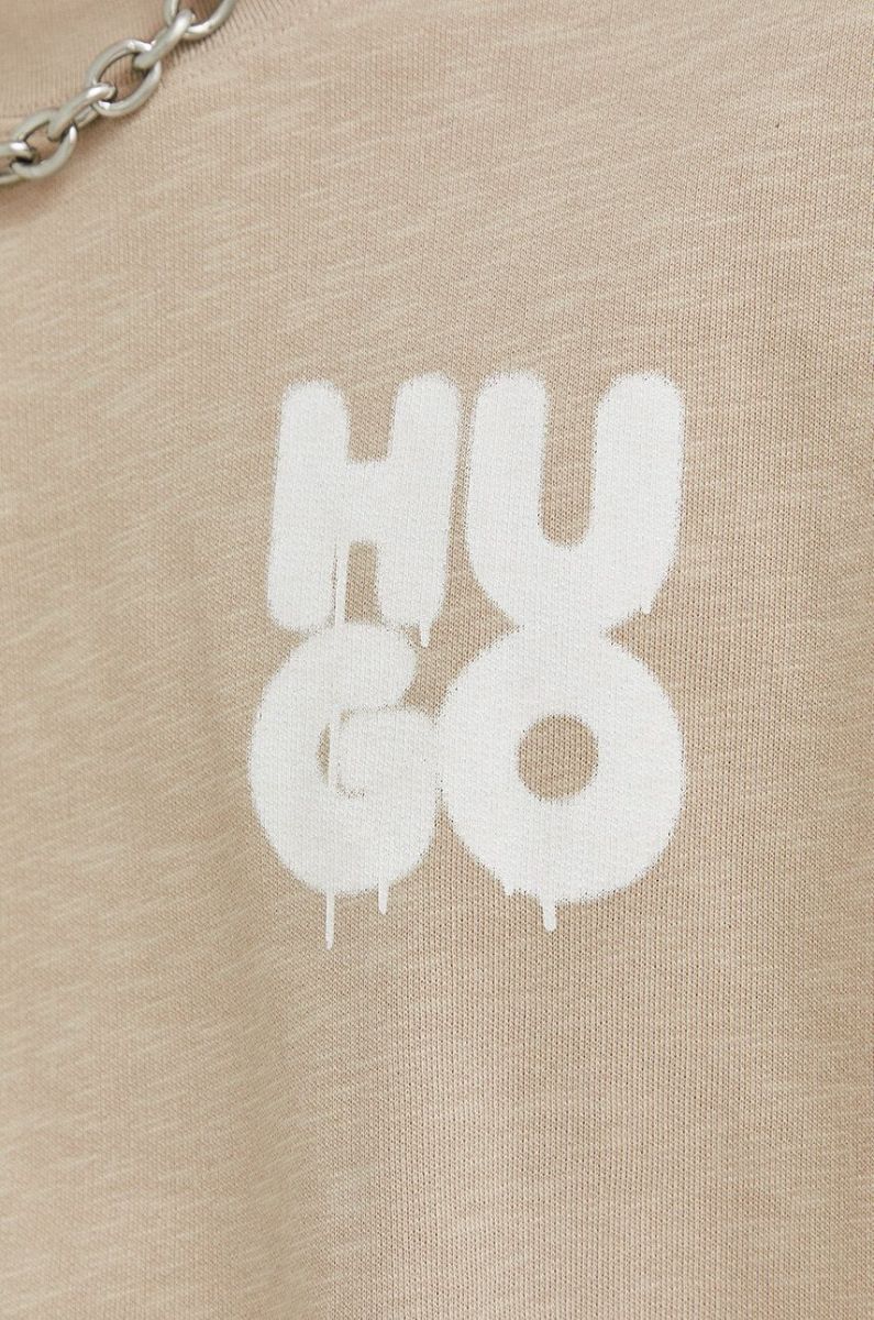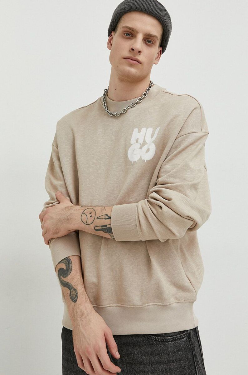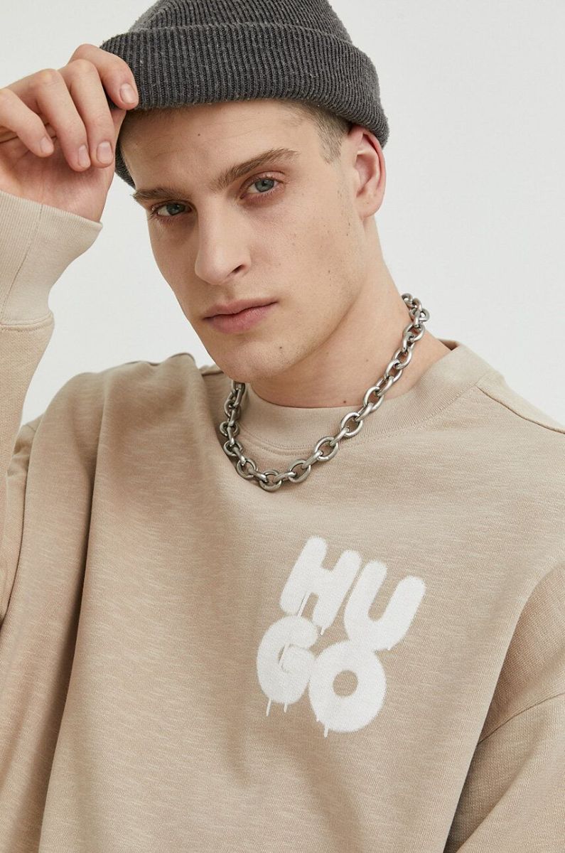 Бавовняна кофта HUGO чоловіча колір бежевий з принтом (3094385)