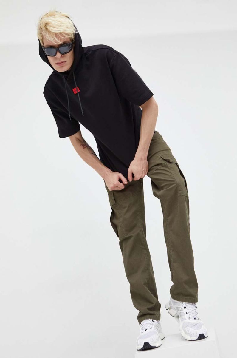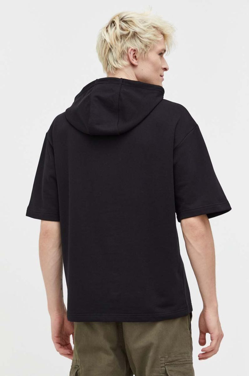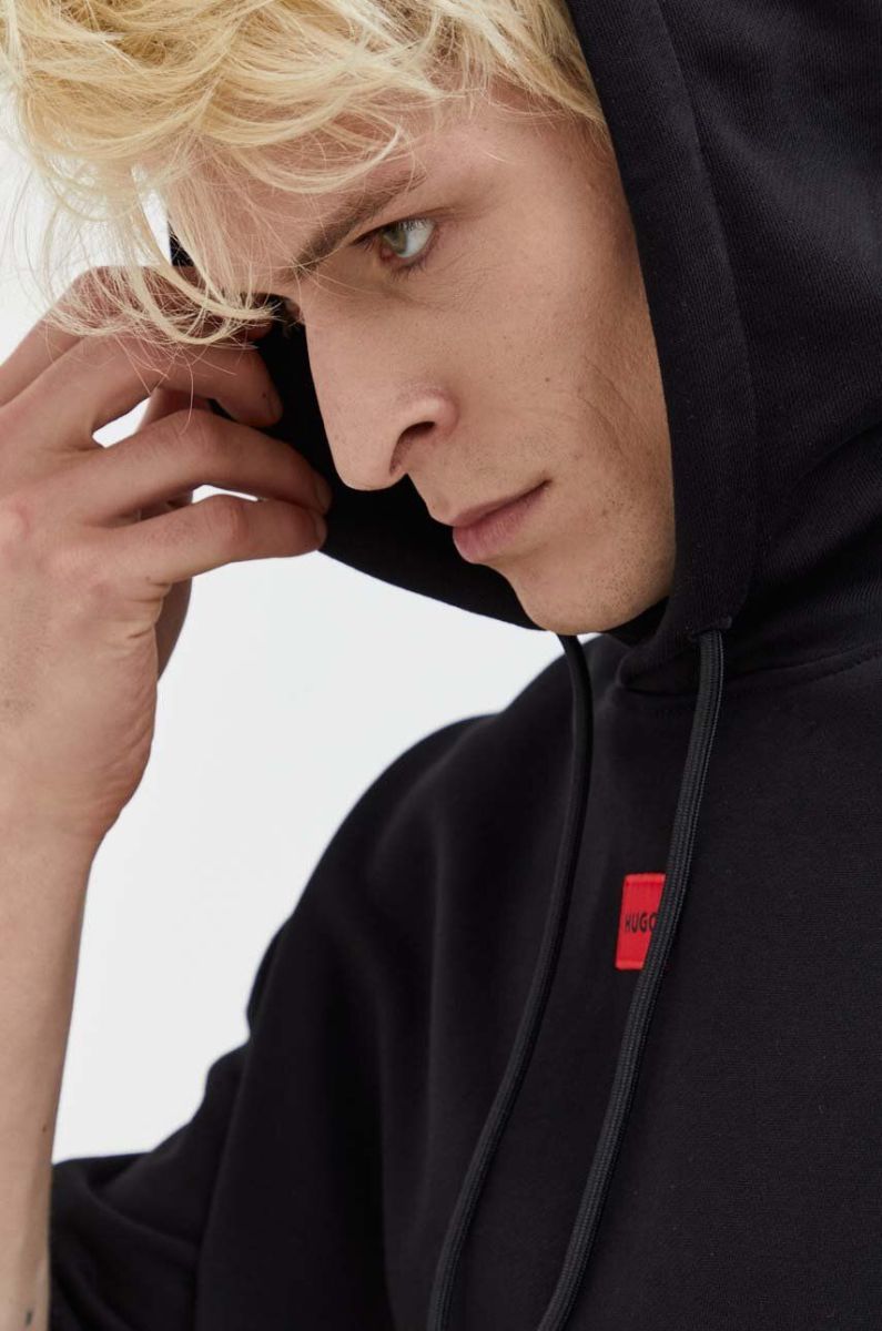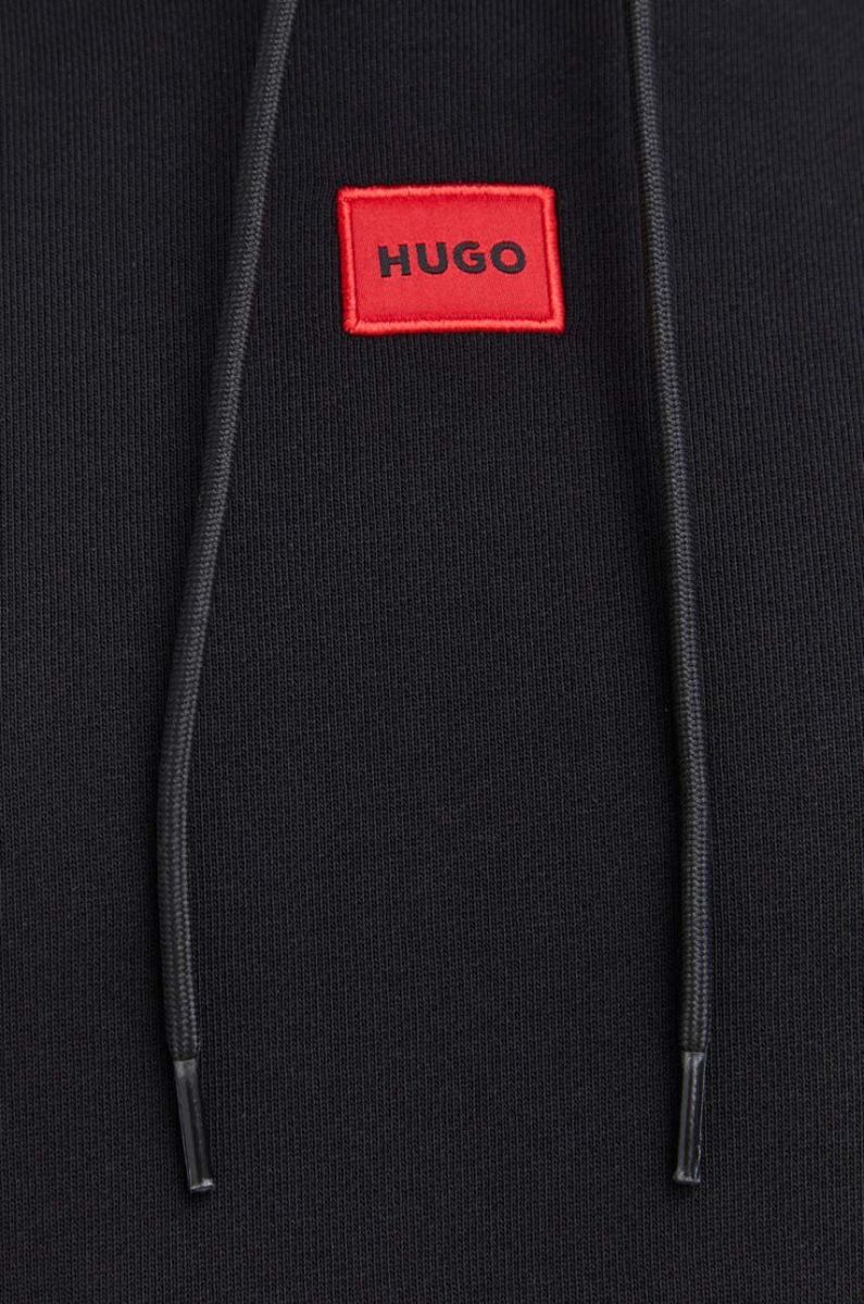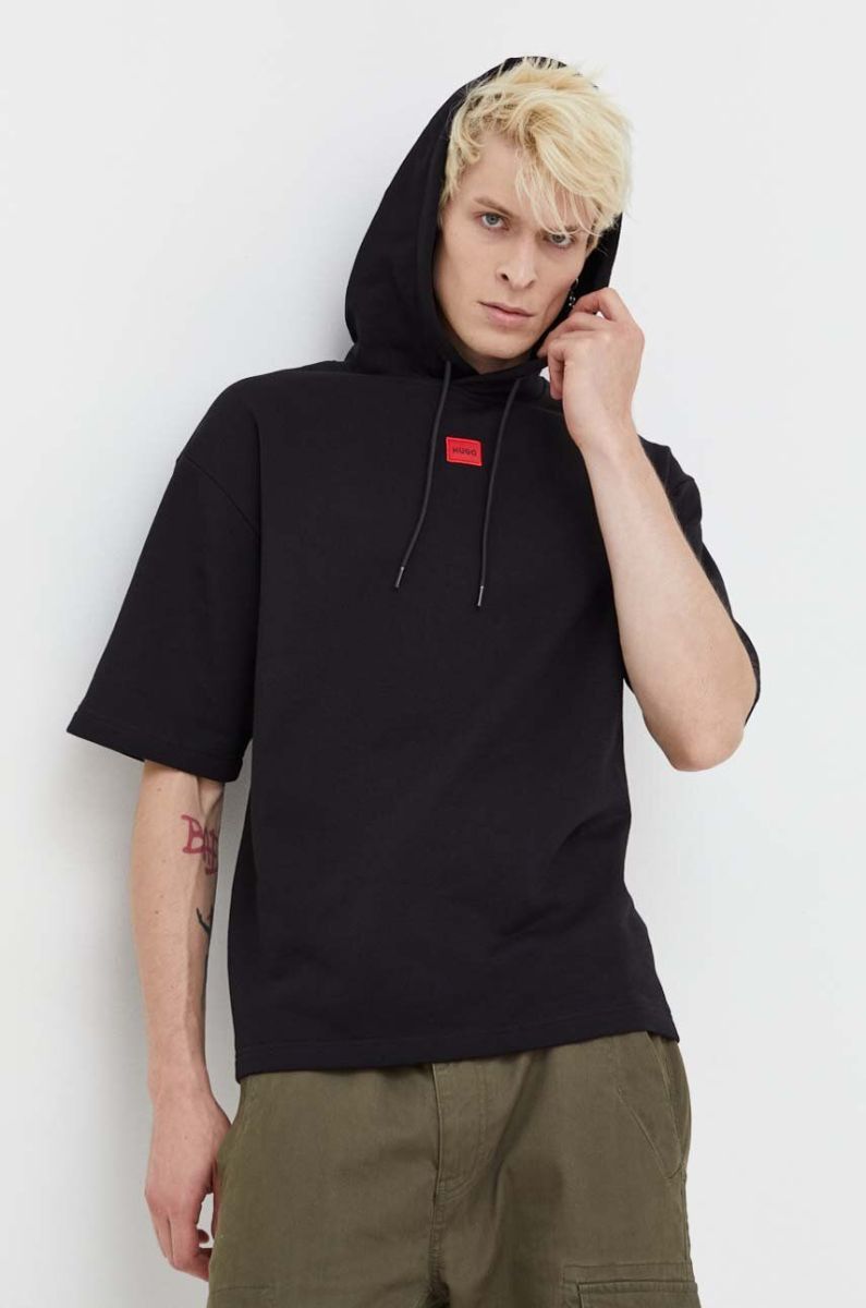 Бавовняна кофта HUGO чоловіча колір чорний з капюшоном однотонна (3480624)