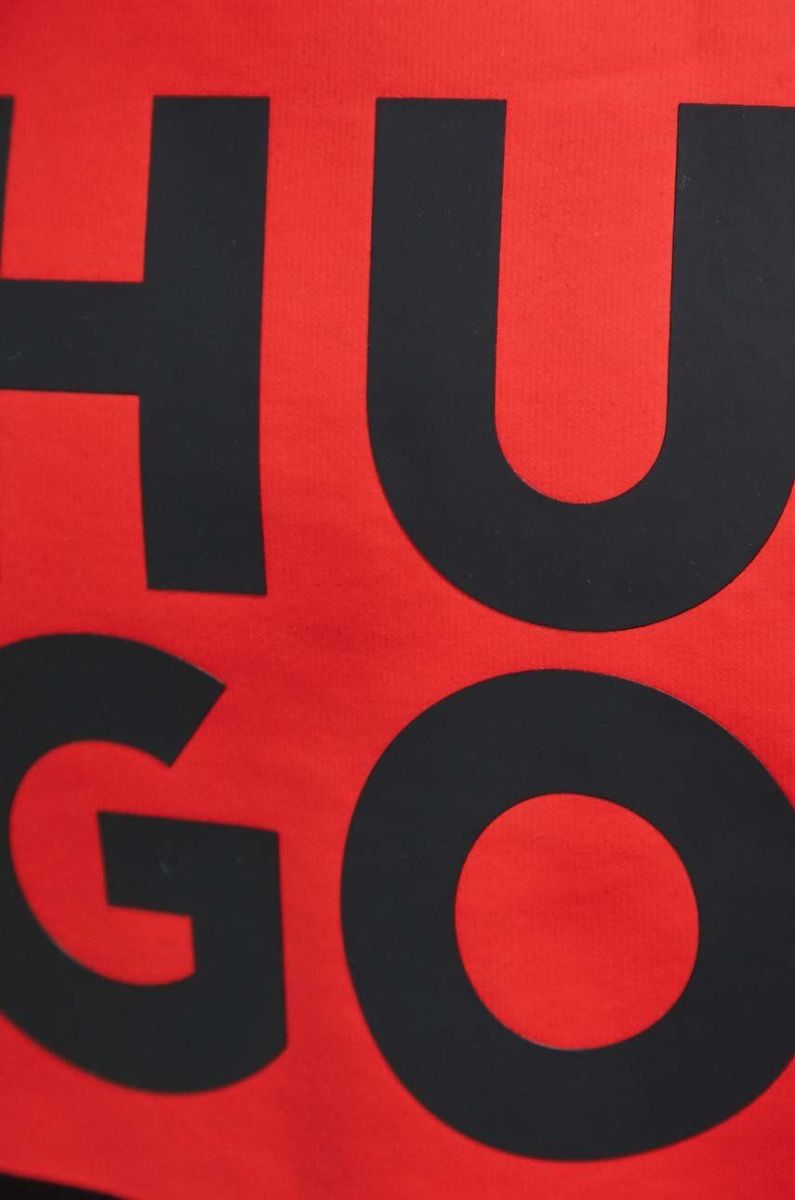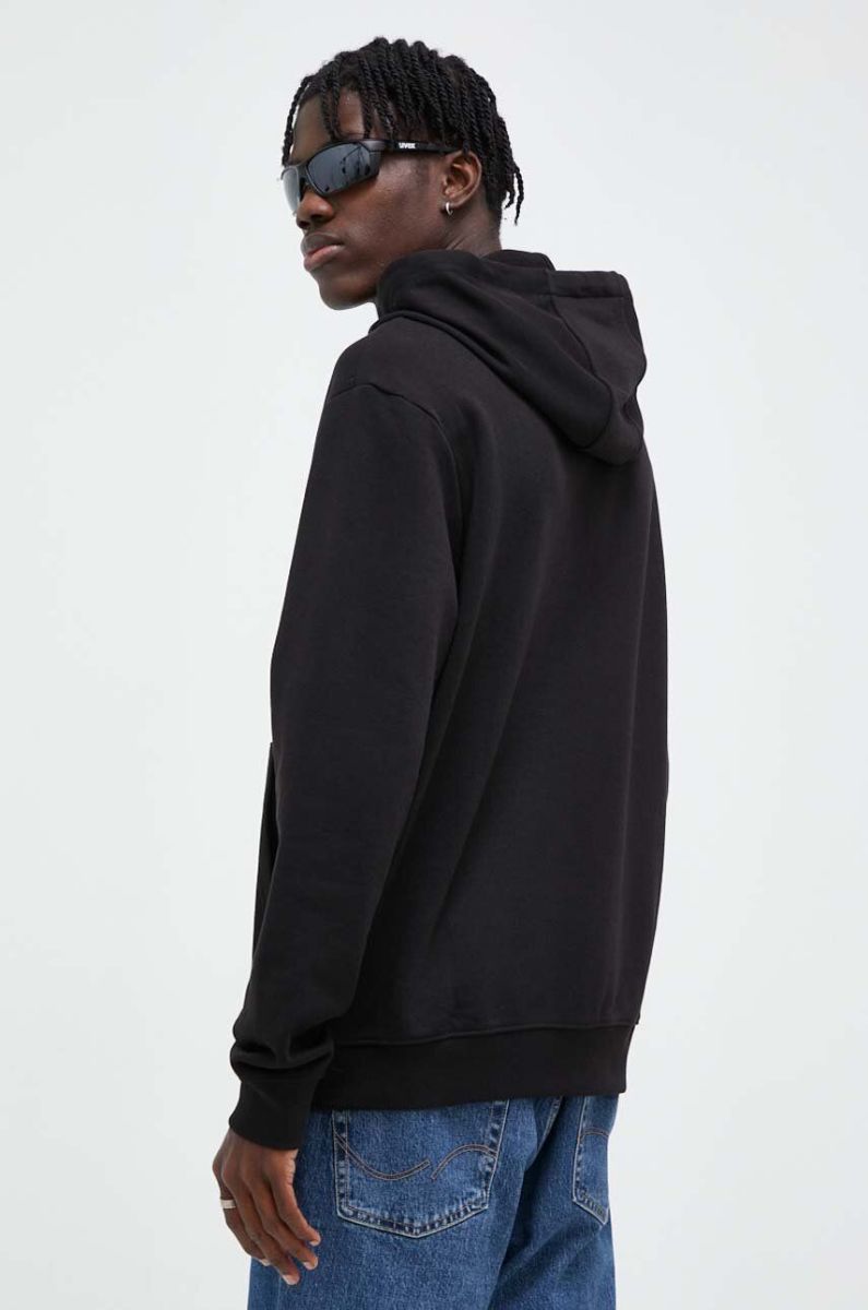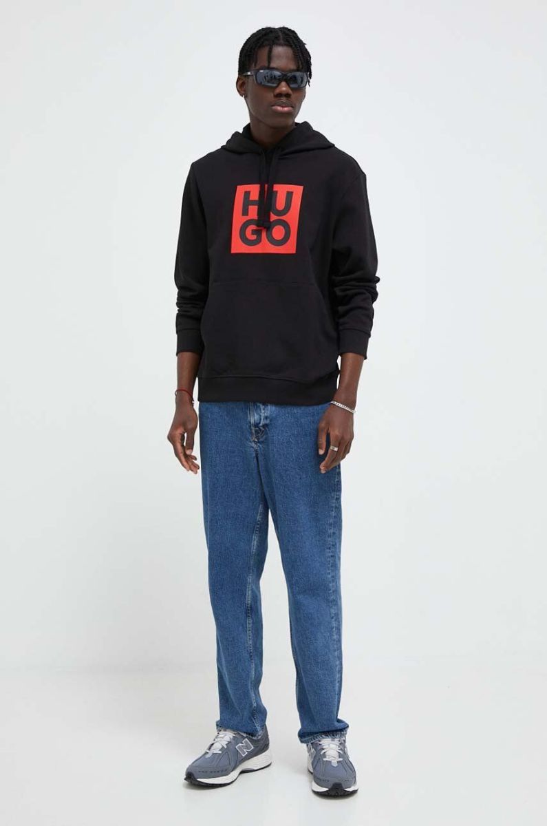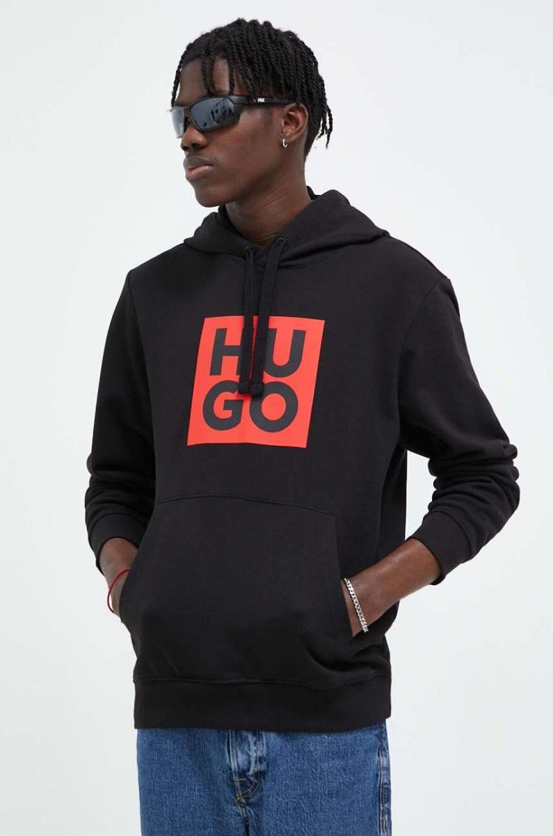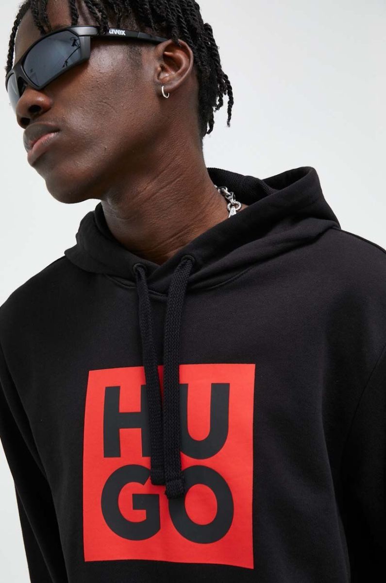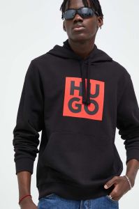 Бавовняна кофта HUGO чоловіча колір чорний з капюшоном з принтом (3413984)