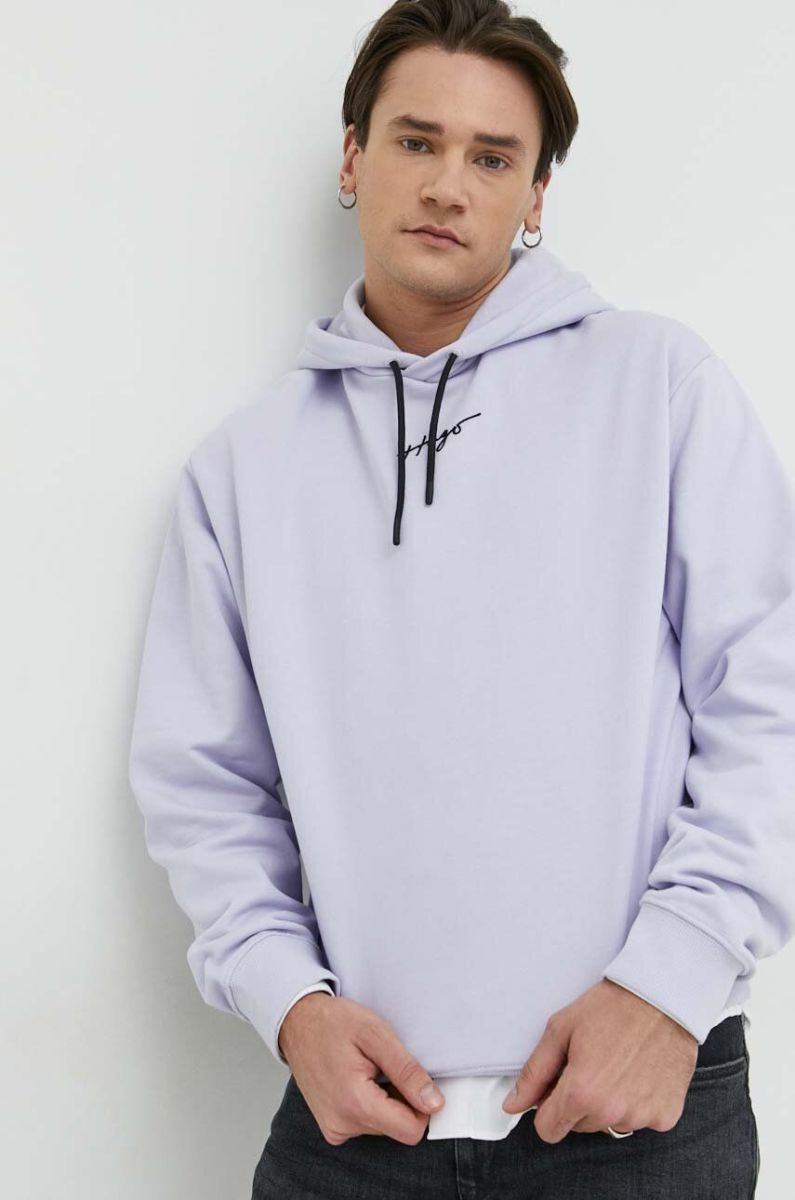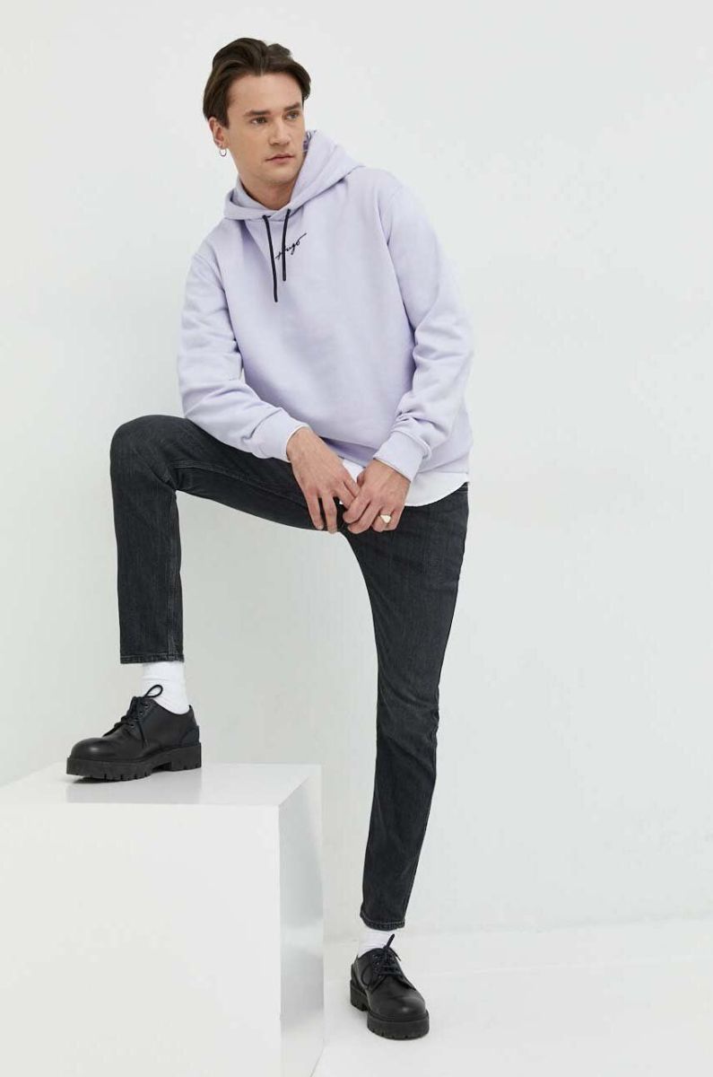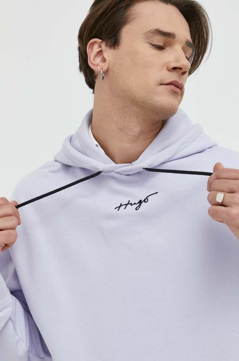 Бавовняна кофта HUGO чоловіча колір фіолетовий з аплікацією