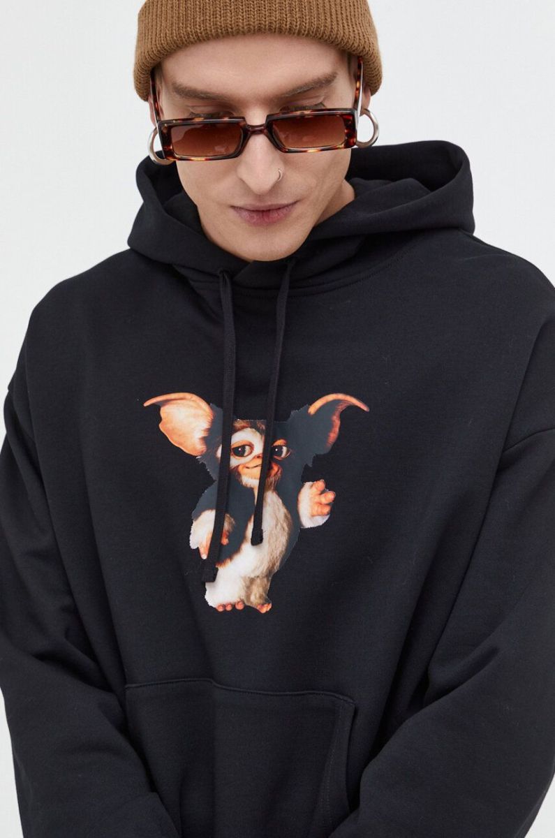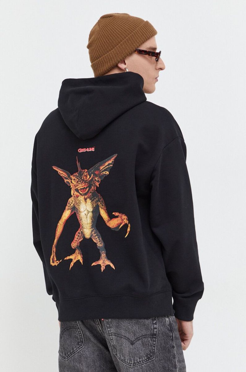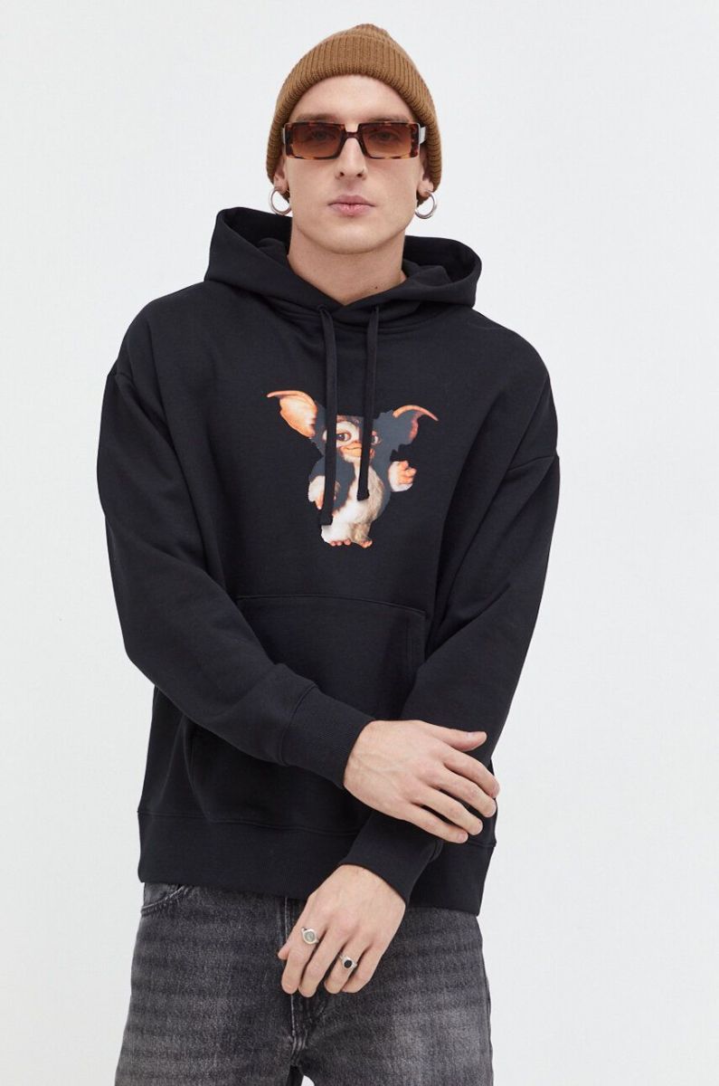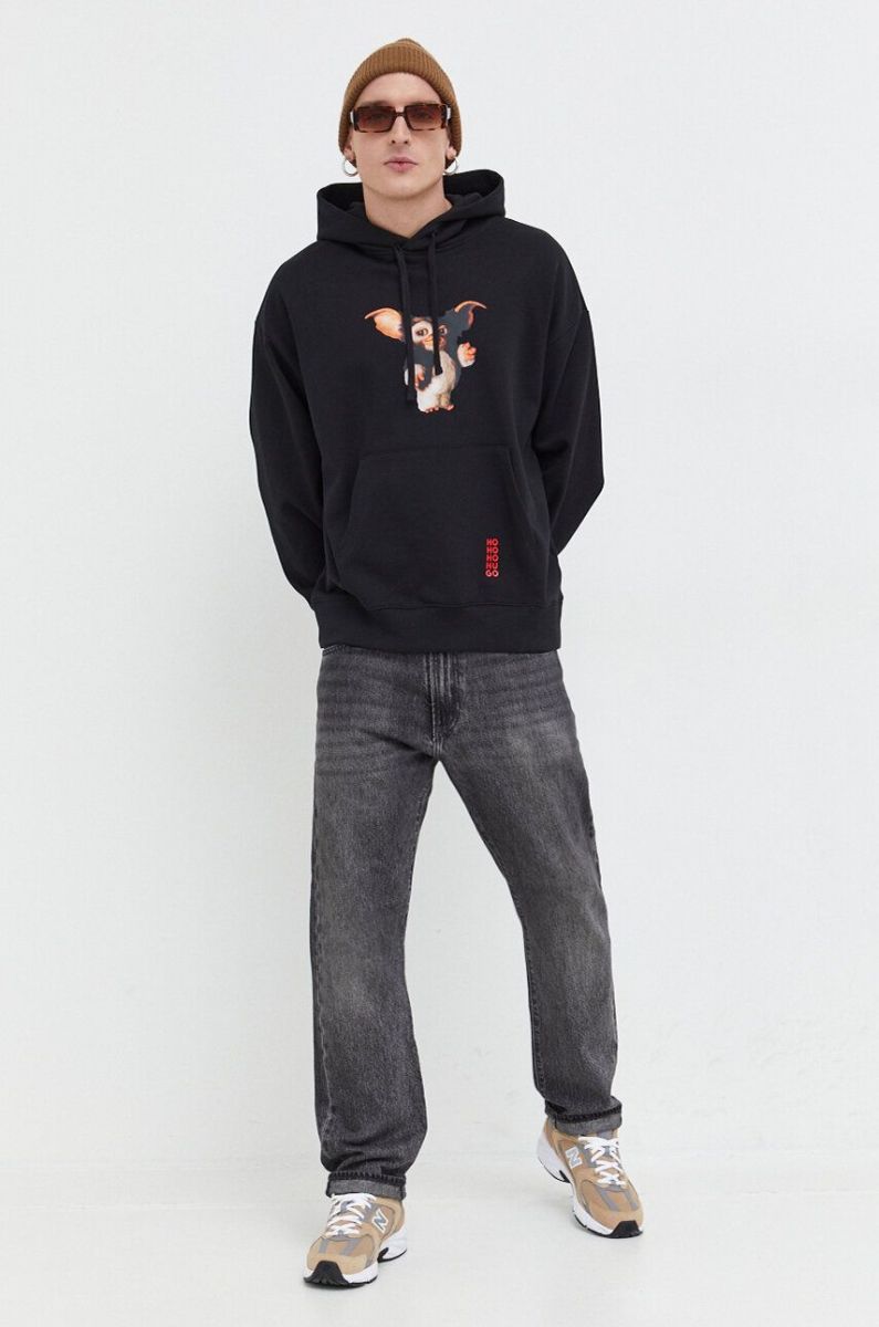 Бавовняна кофта HUGO x Gremlins чоловіча колір чорний з капюшоном з принтом