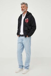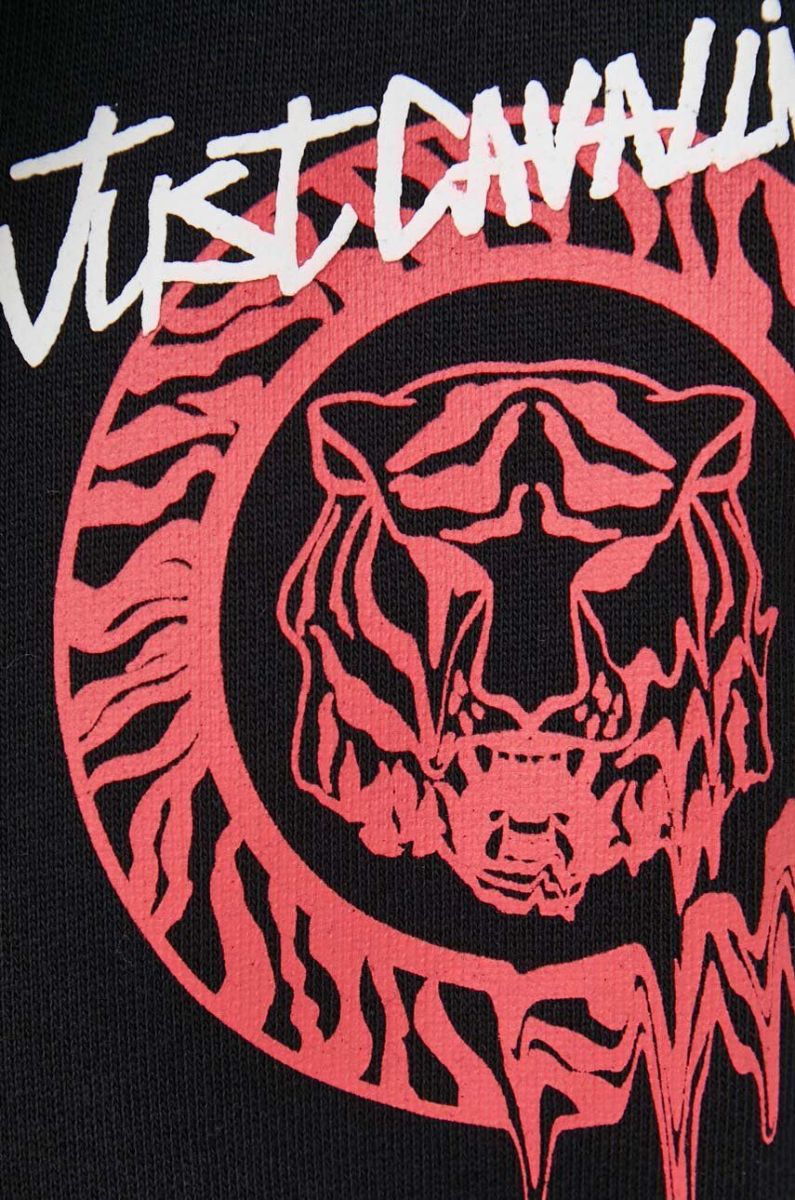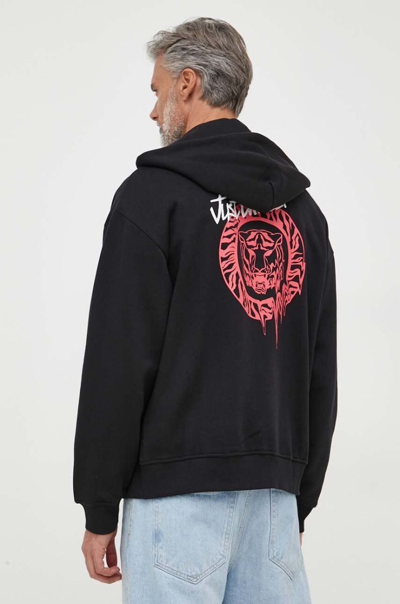 Бавовняна кофта Just Cavalli чоловіча колір чорний з капюшоном з принтом (3613492)