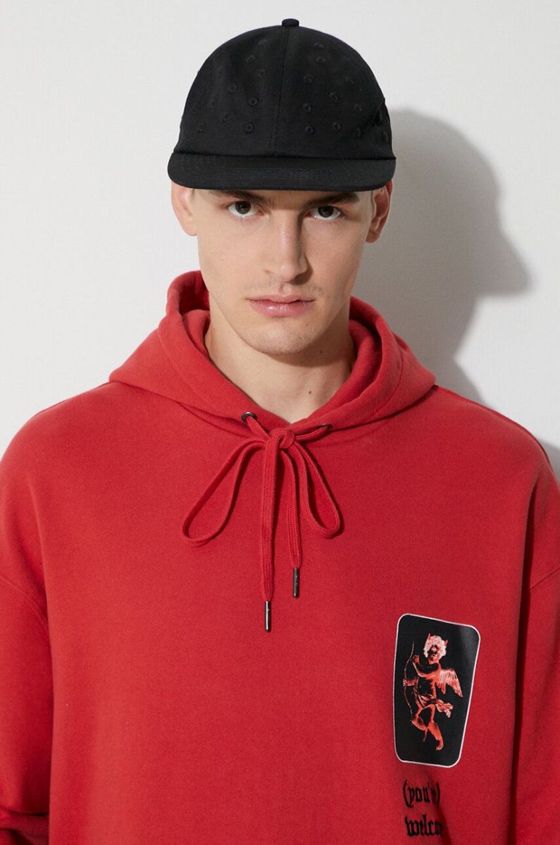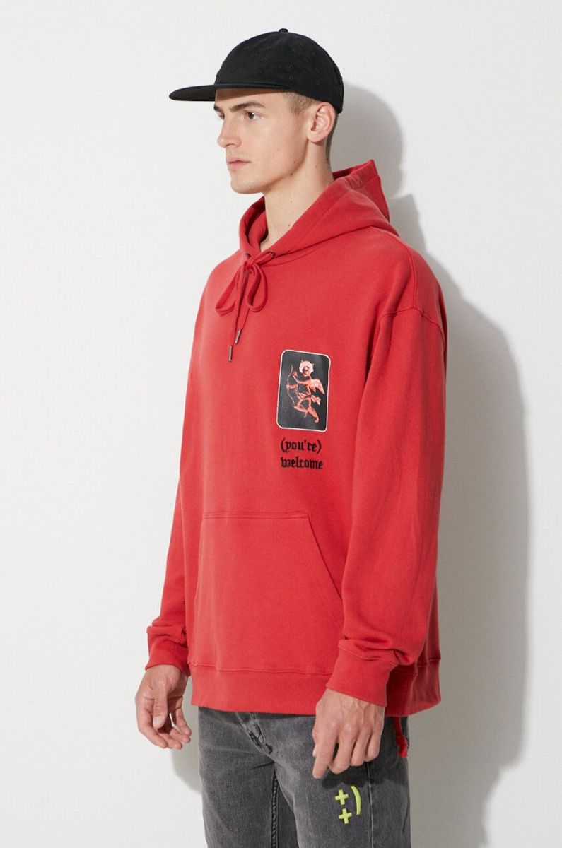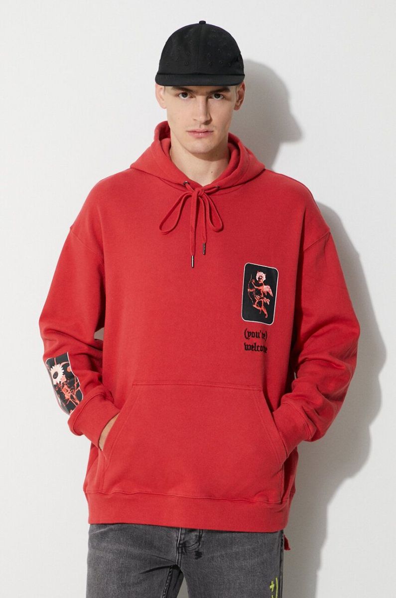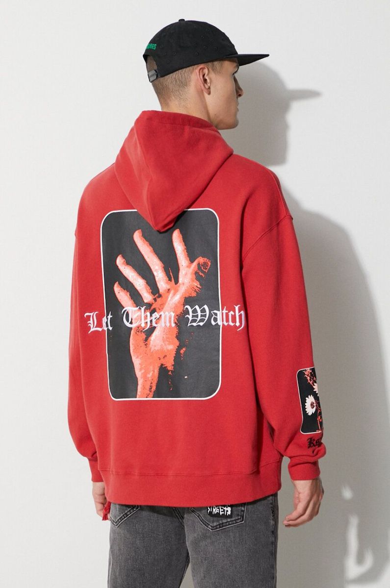 Бавовняна кофта KSUBI чоловіча колір червоний з капюшоном з принтом