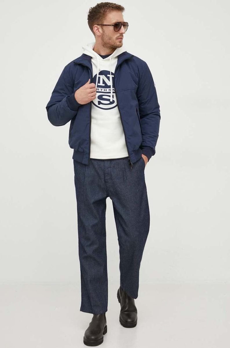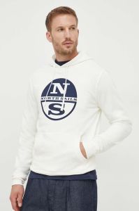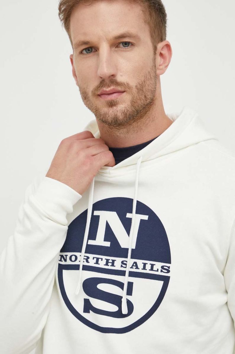 Бавовняна кофта North Sails чоловіча колір бежевий з капюшоном з принтом
