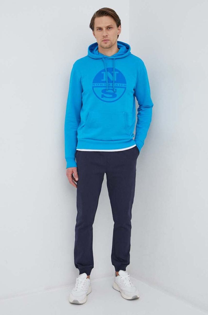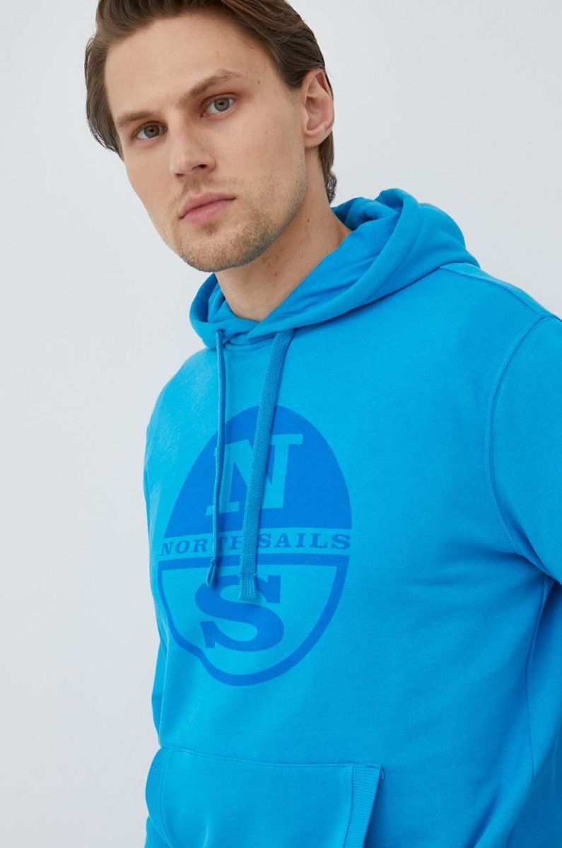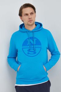Бавовняна кофта North Sails чоловіча з капюшоном з принтом колір блакитний (3081658)