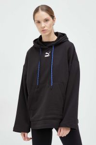 Бавовняна кофта Puma жіноча колір чорний з капюшоном з принтом