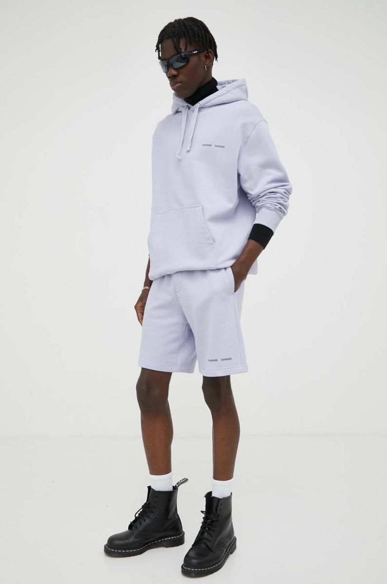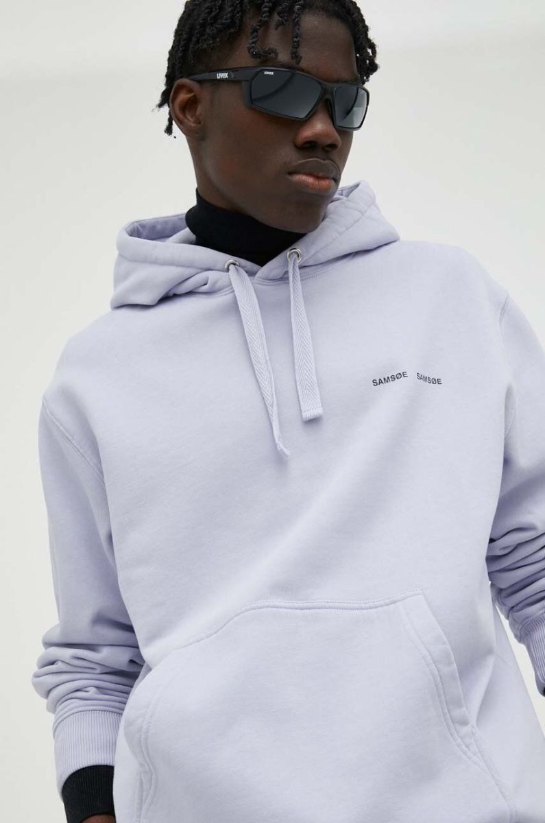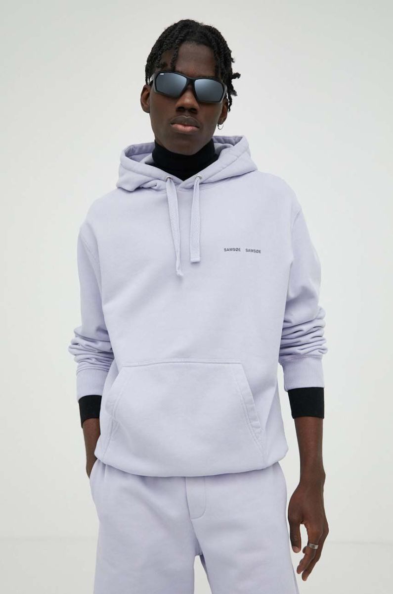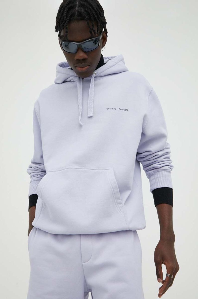 Бавовняна кофта Samsoe Samsoe чоловіча колір фіолетовий з капюшоном з принтом