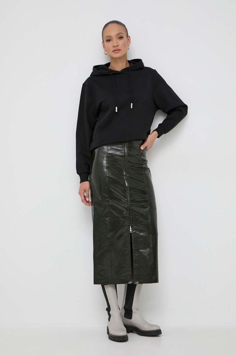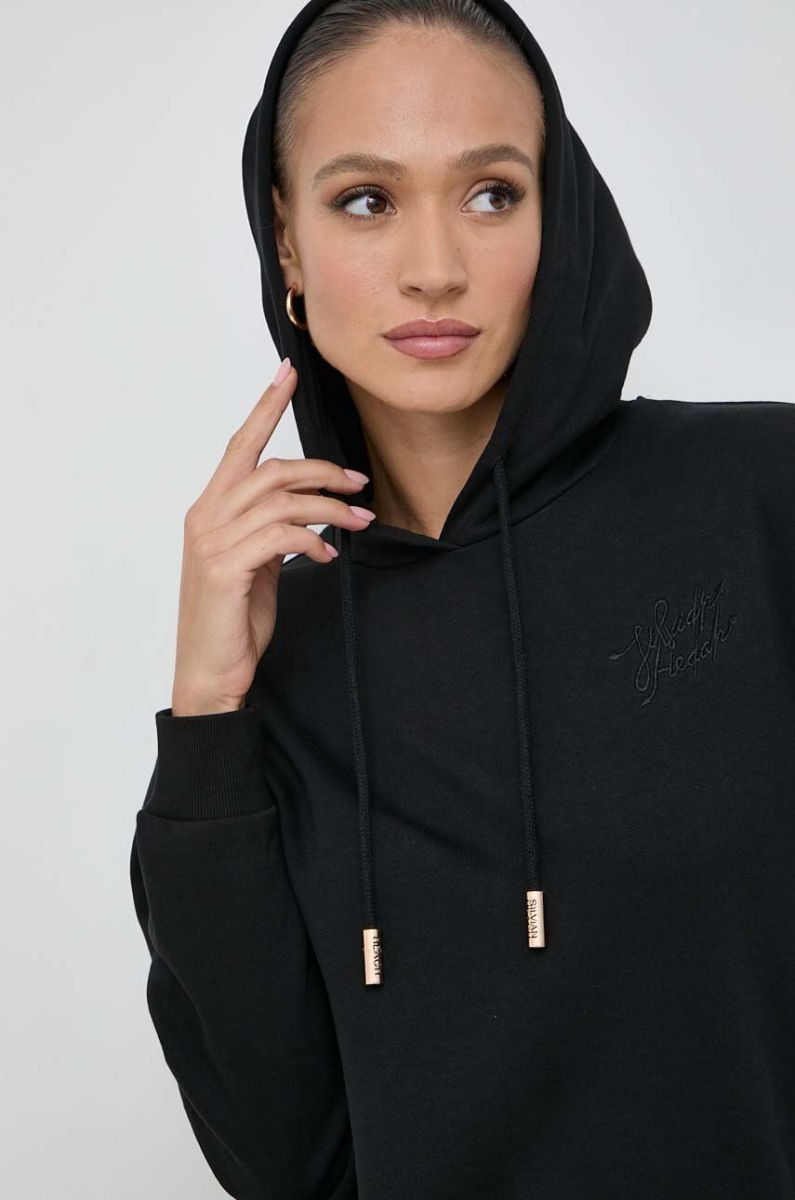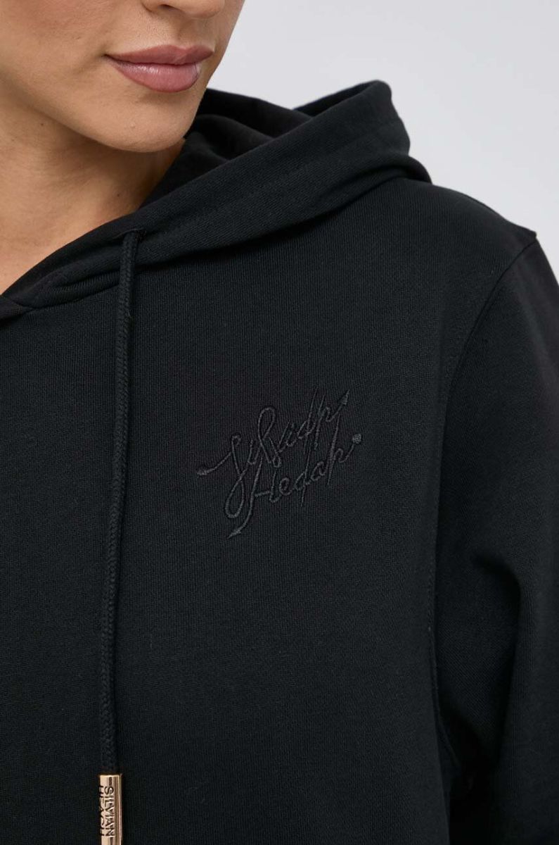 Бавовняна кофта Silvian Heach жіноча колір чорний з капюшоном однотонна