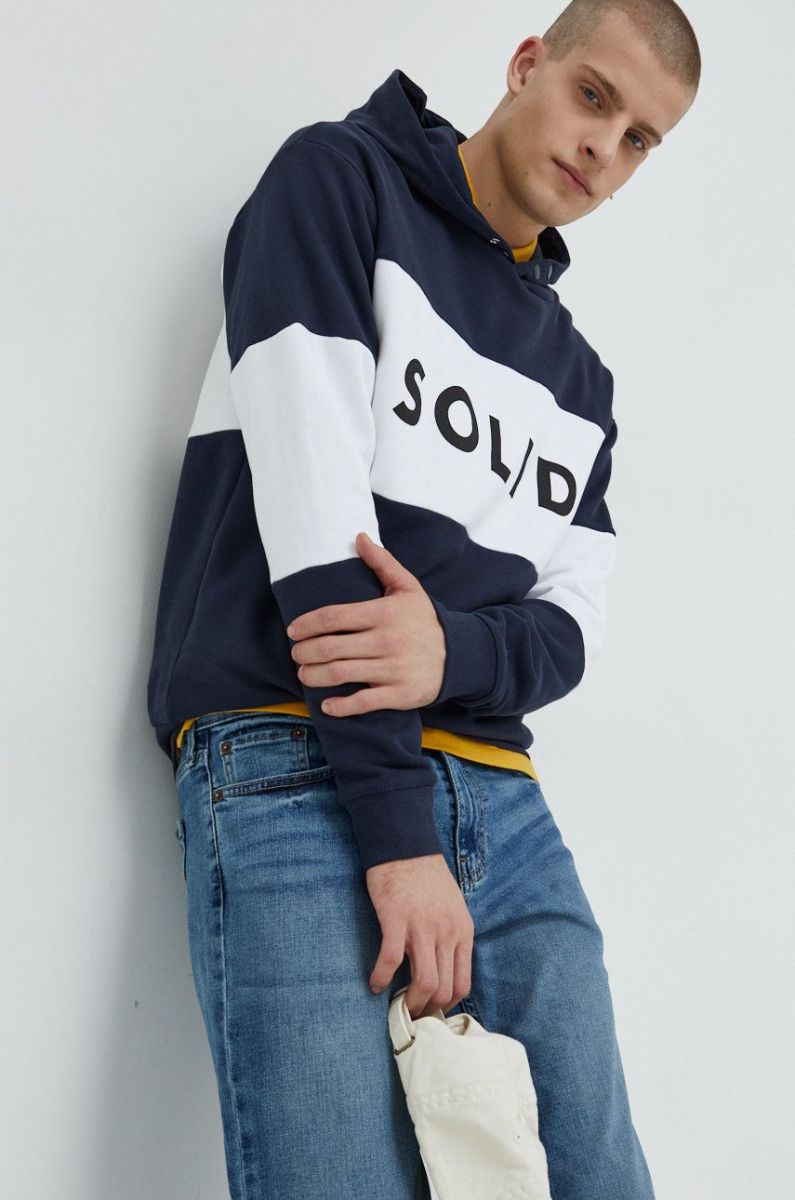 Бавовняна кофта Solid чоловіча колір синій з принтом