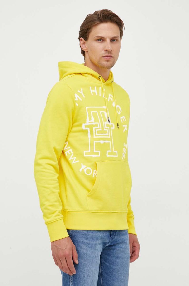 Бавовняна кофта Tommy Hilfiger чоловіча колір жовтий з капюшоном з принтом