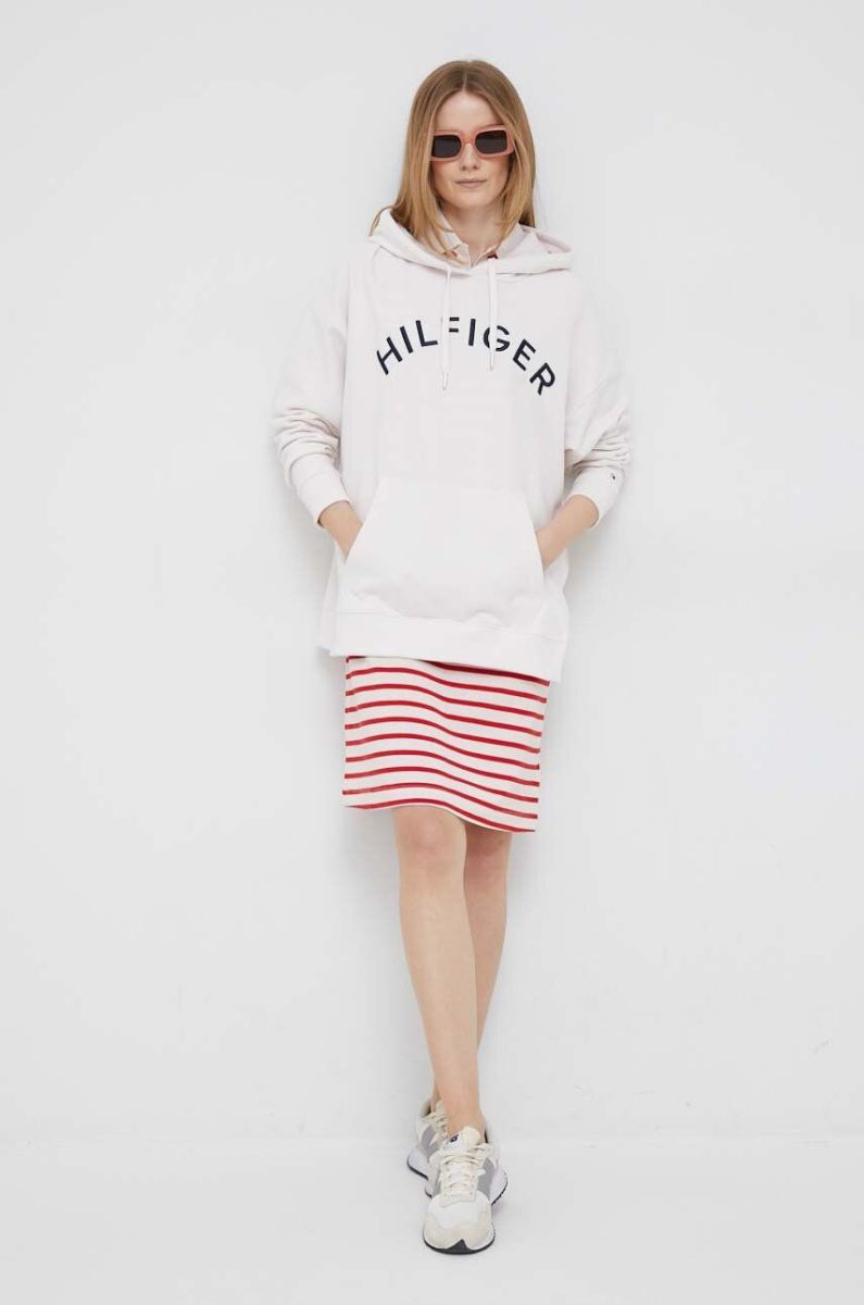 Бавовняна кофта Tommy Hilfiger жіноча колір бежевий з капюшоном з аплікацією