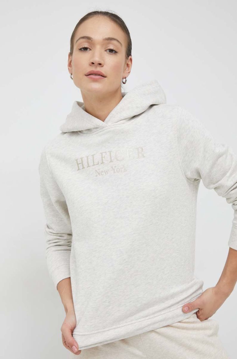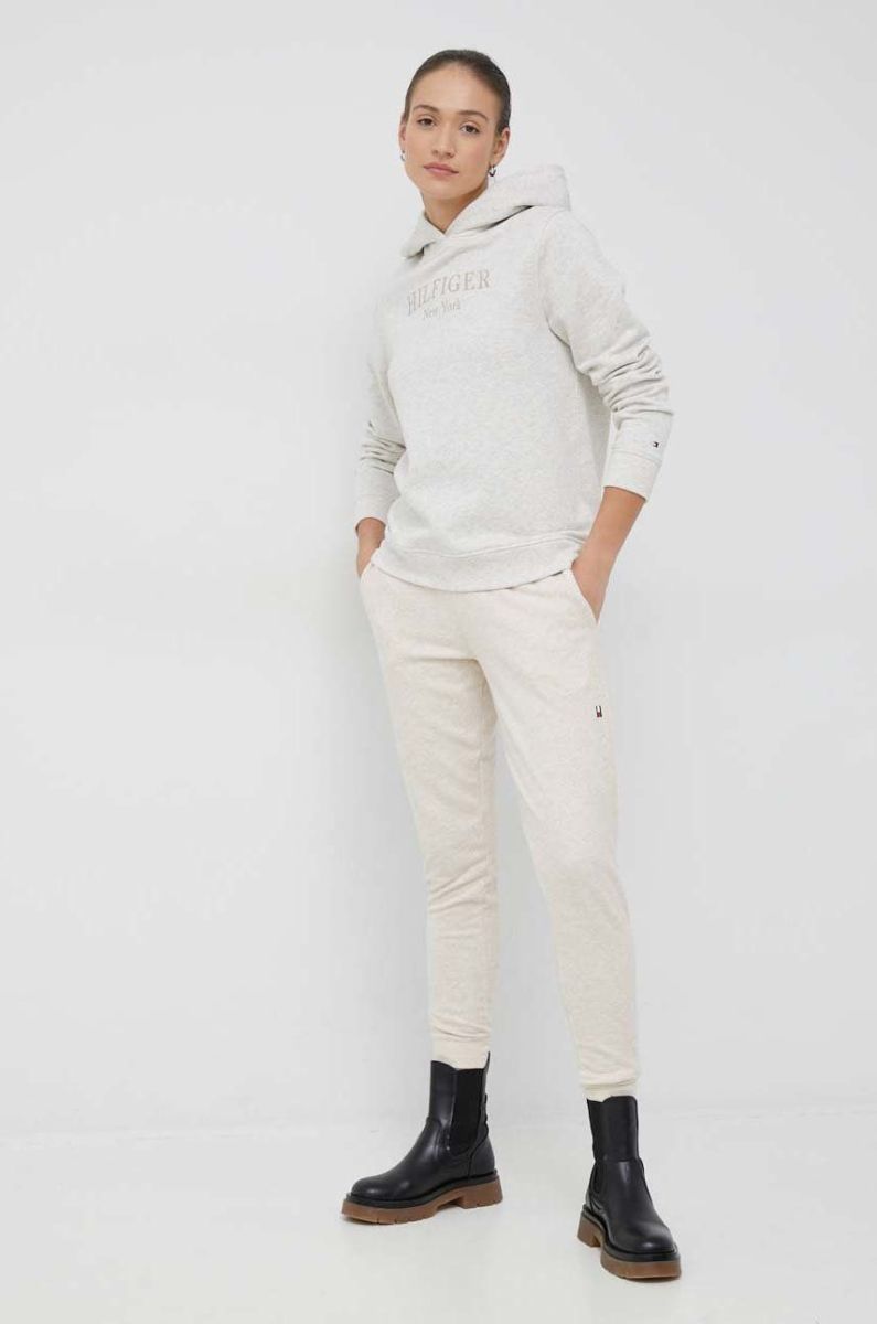 бавовняна кофта Tommy Hilfiger жіноча колір бежевий з капюшоном з принтом