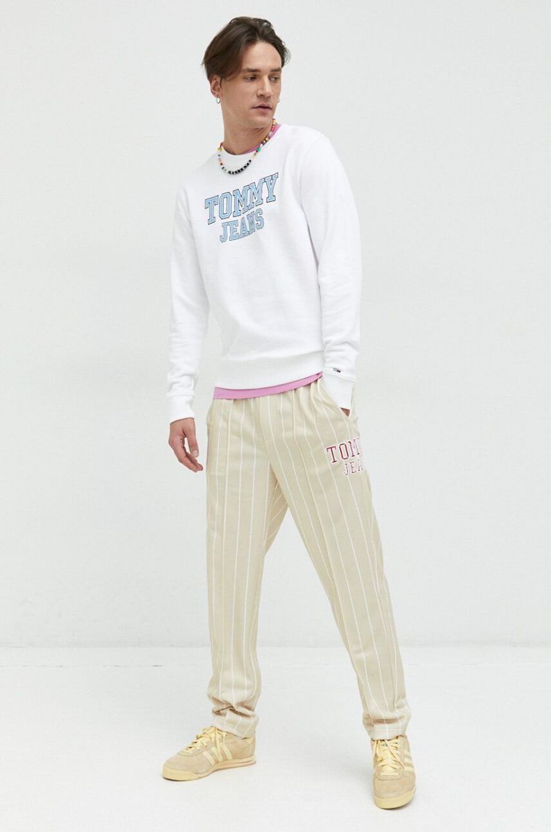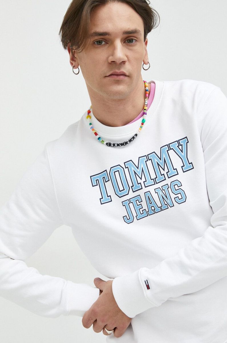 Бавовняна кофта Tommy Jeans чоловіча колір білий з принтом (3013176)