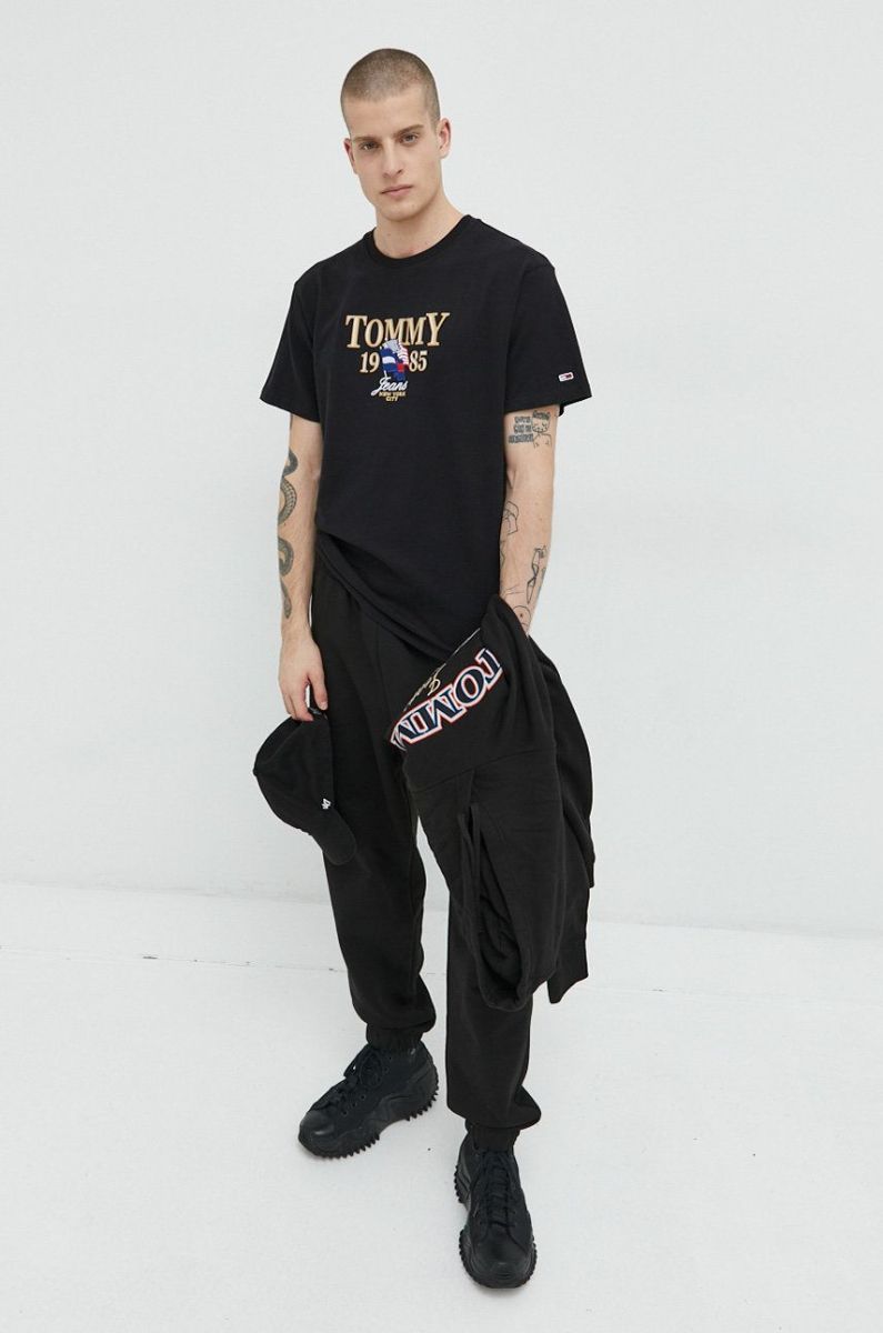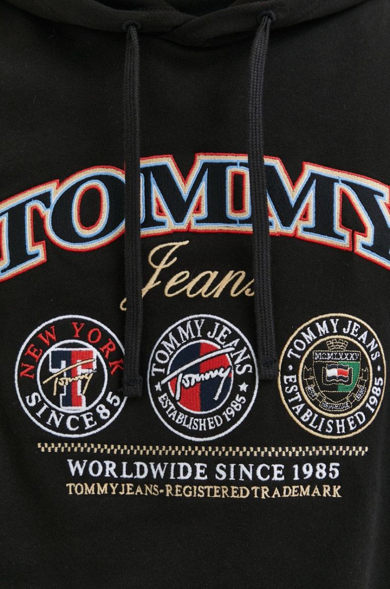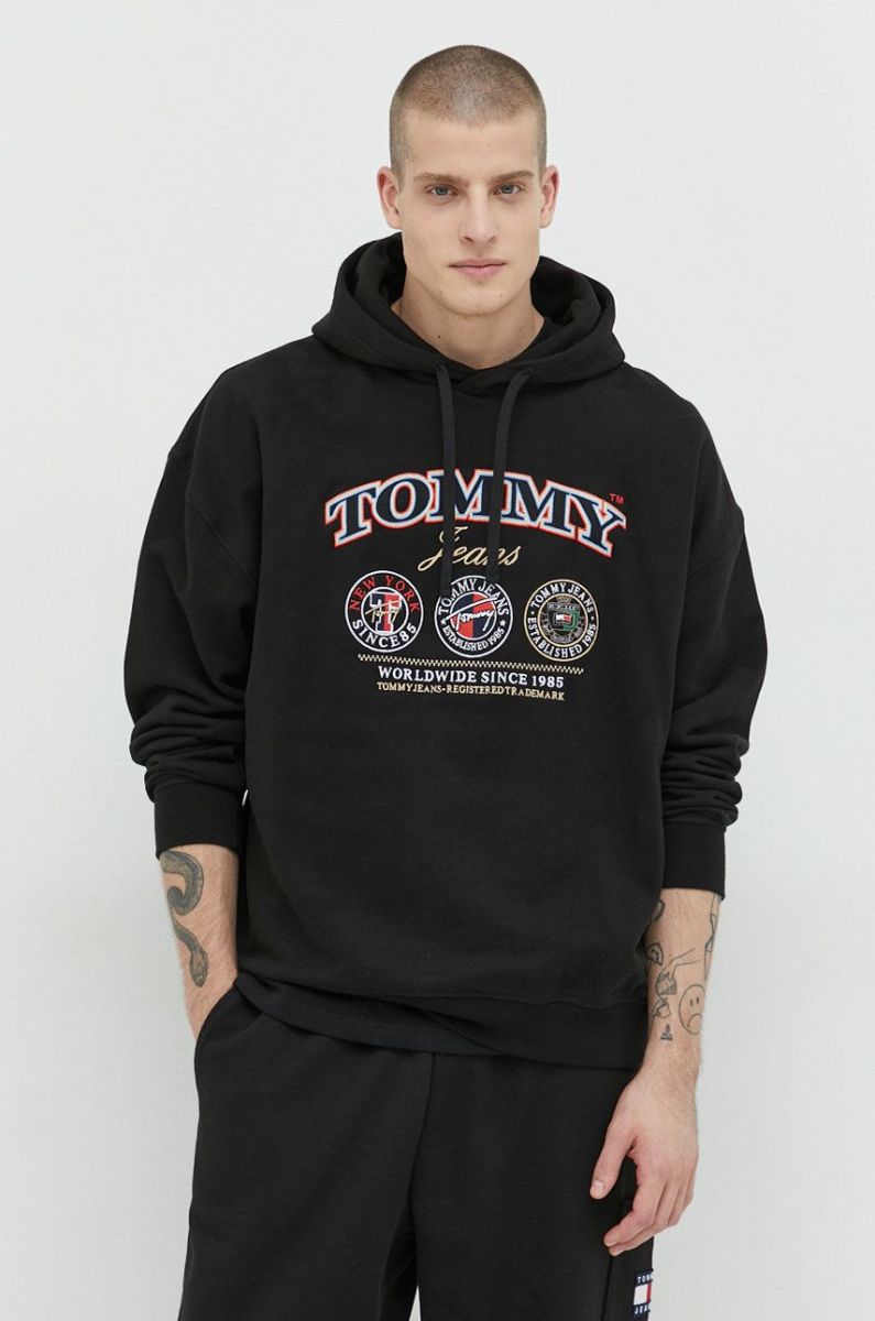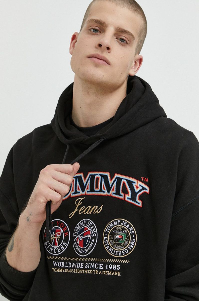 Бавовняна кофта Tommy Jeans чоловіча колір чорний з капюшоном з аплікацією (2890345)