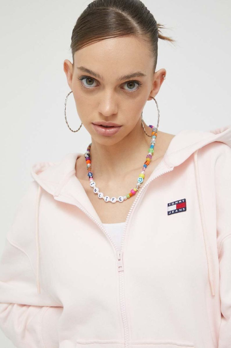 Бавовняна кофта Tommy Jeans жіноча колір рожевий з капюшоном однотонна (3073307)
