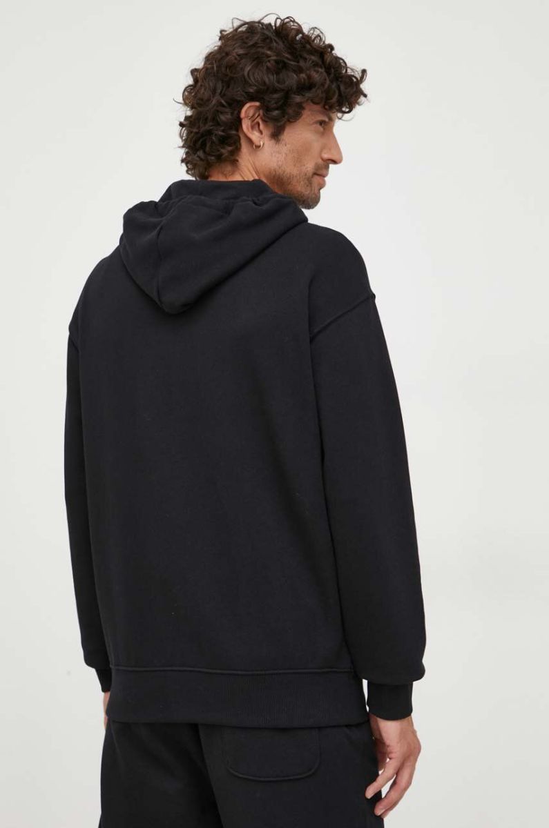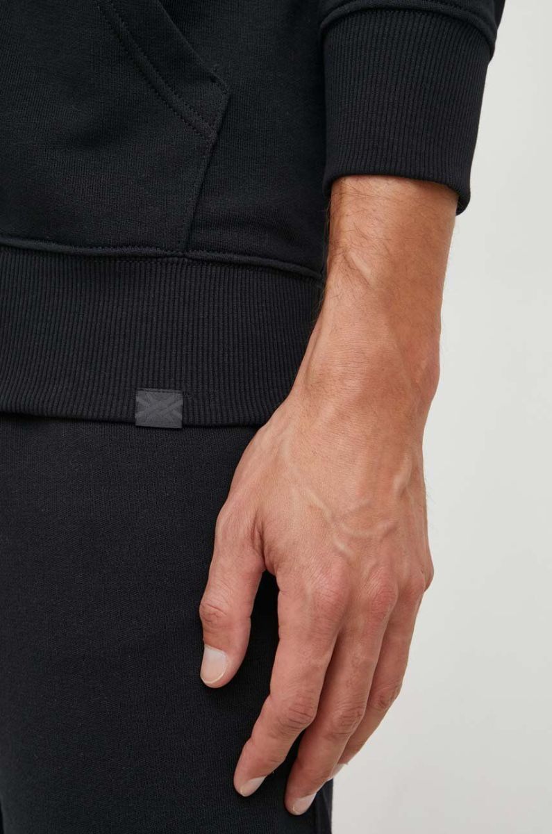 Бавовняна кофта United Colors of Benetton чоловіча колір чорний з капюшоном однотонна (3453857)