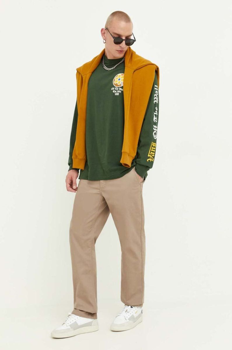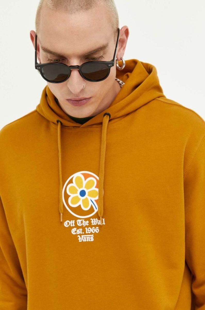 Бавовняна кофта Vans чоловіча колір коричневий з капюшоном з принтом (3379061)