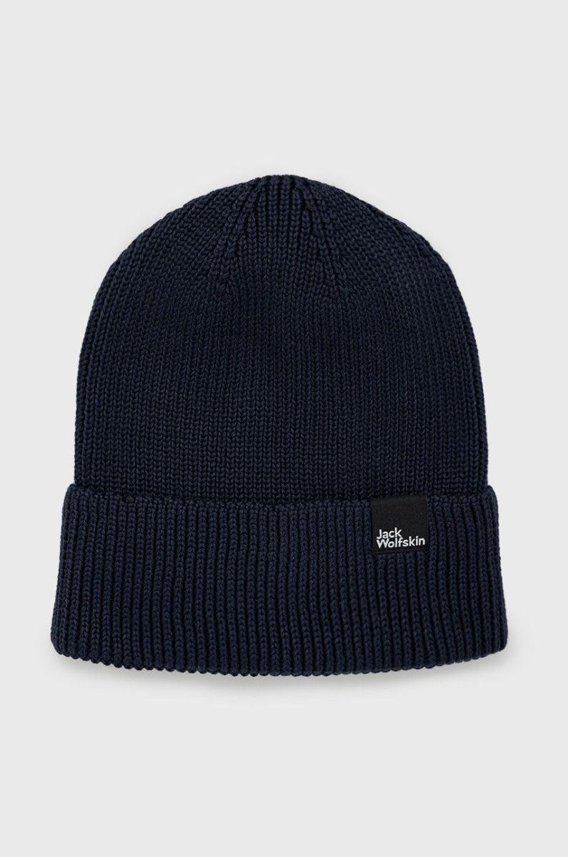 Бавовняна шапка Jack Wolfskin колір синій з тонкого трикотажу з бавовни