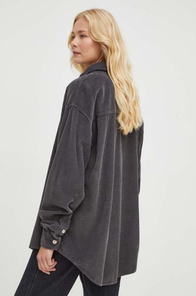 Бавовняна сорочка American Vintage жіноча колір сірий relaxed класичний комір (3584859)
