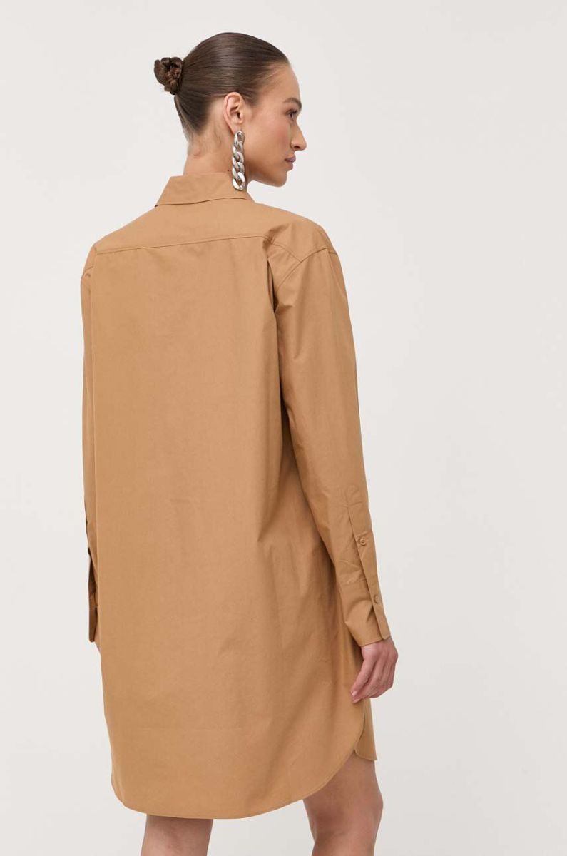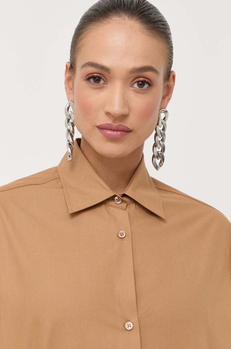 Бавовняна сорочка BOSS жіноча колір бежевий relaxed класичний комір