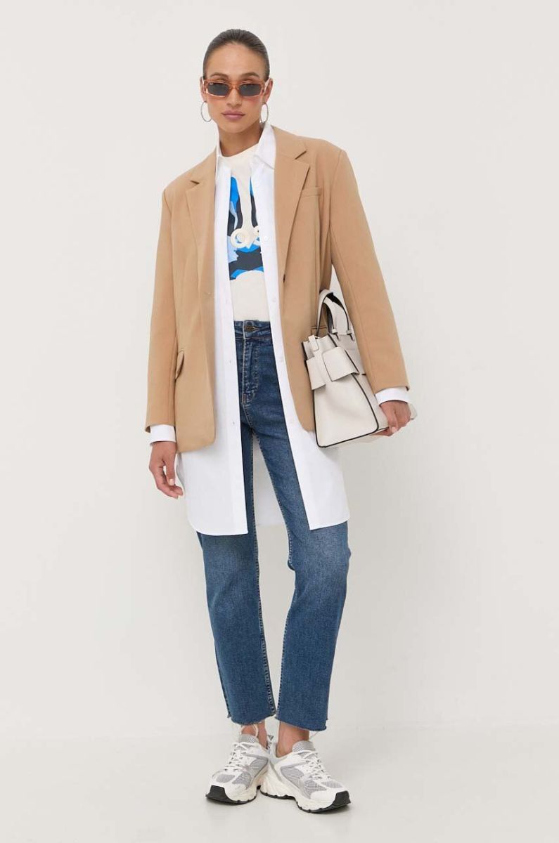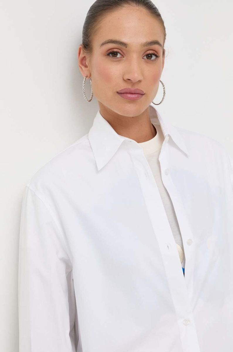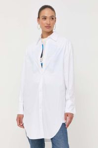 Бавовняна сорочка BOSS жіноча колір білий relaxed класичний комір