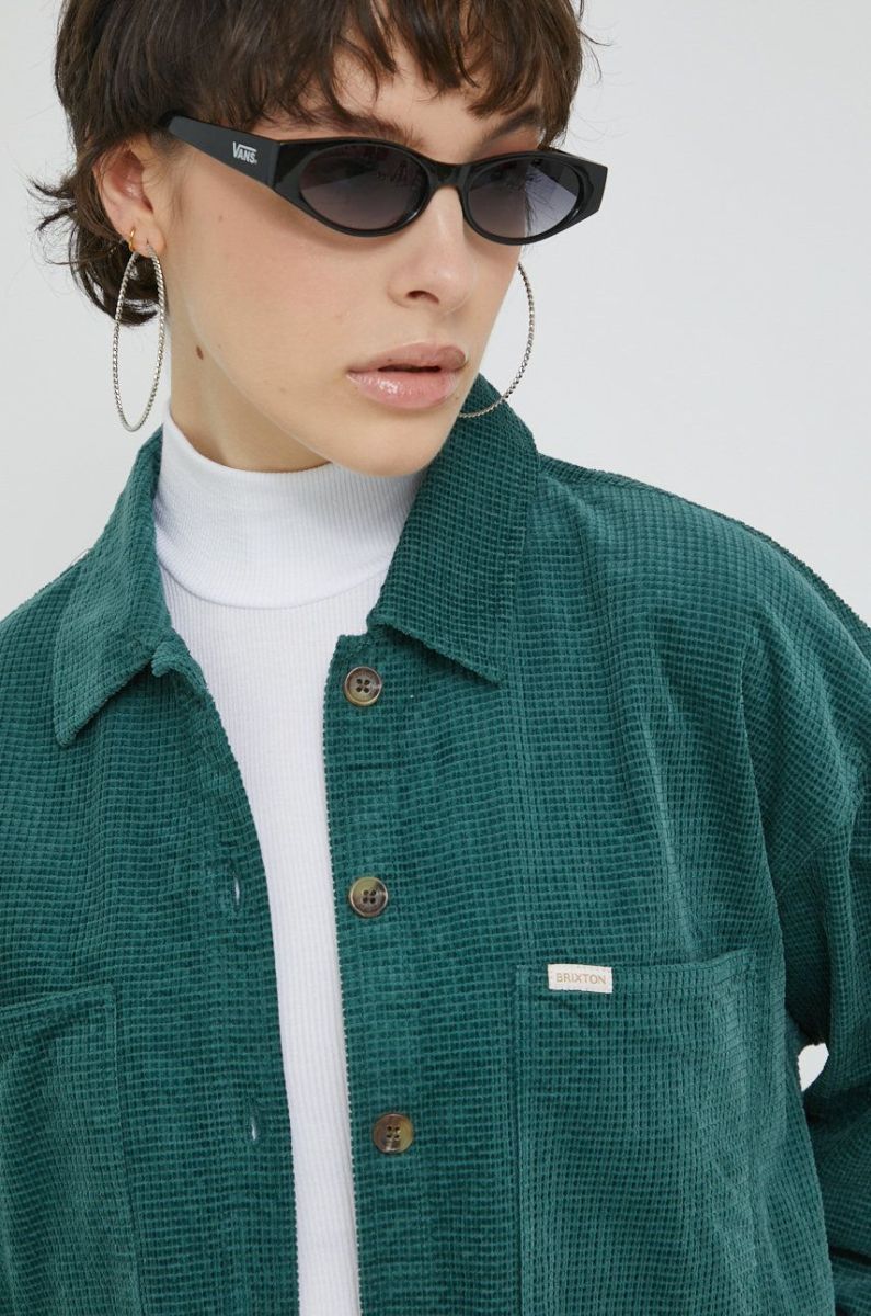 Бавовняна сорочка Brixton жіноча колір зелений relaxed класичний комір