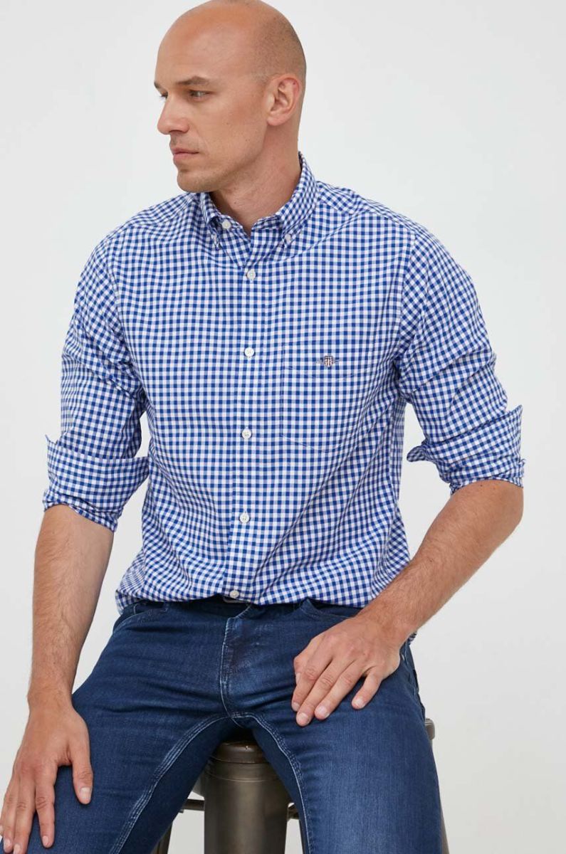 Бавовняна сорочка Gant чоловіча regular комір button-down колір блакитний (3342069)