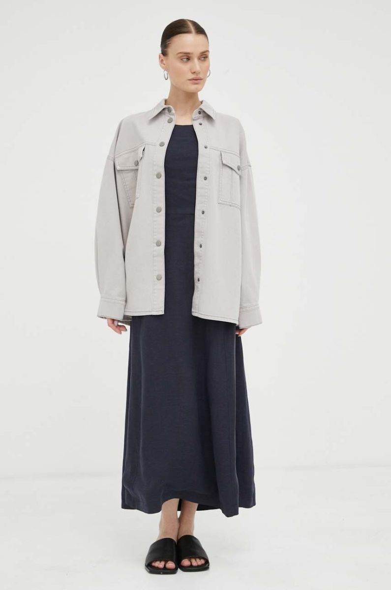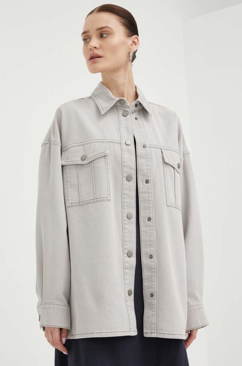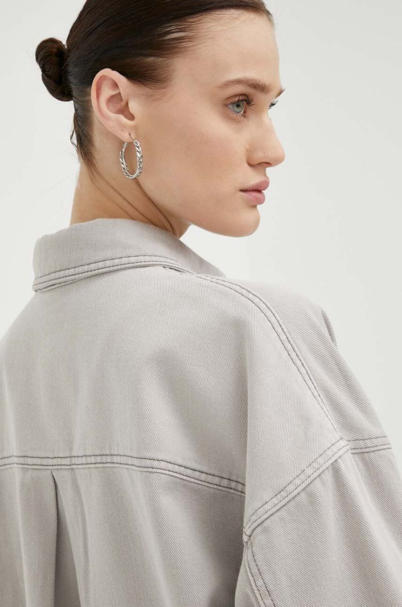 Бавовняна сорочка Gestuz жіноча колір сірий relaxed класичний комір
