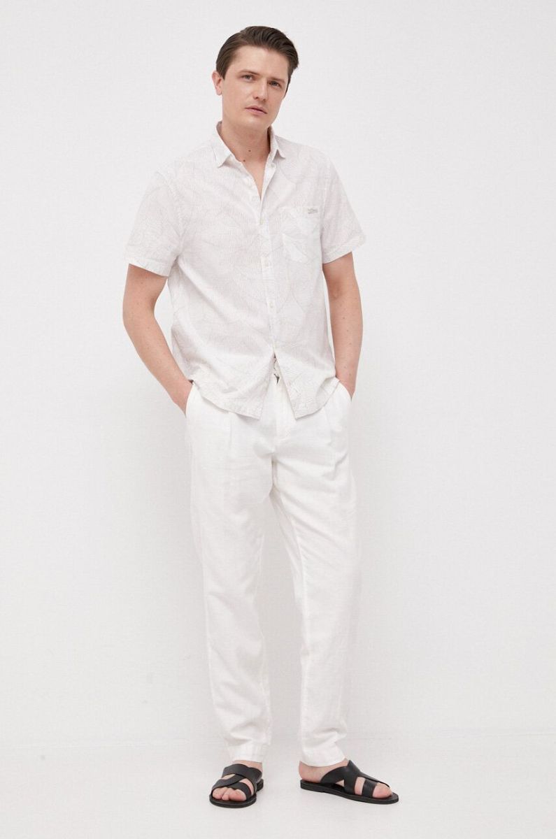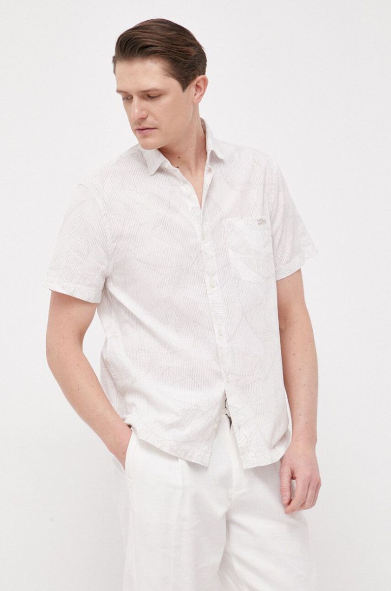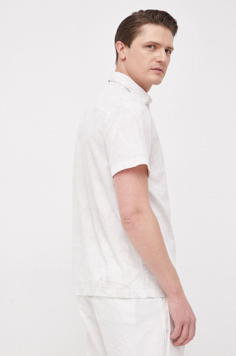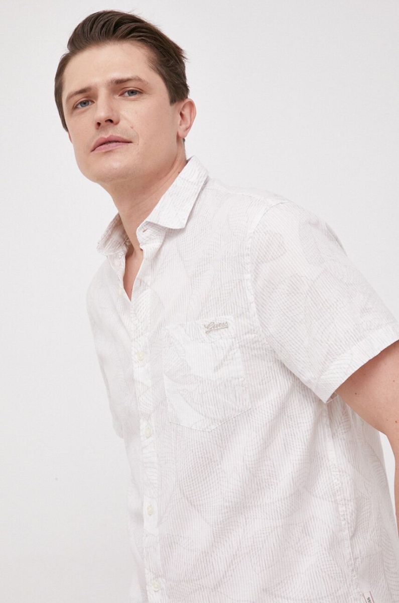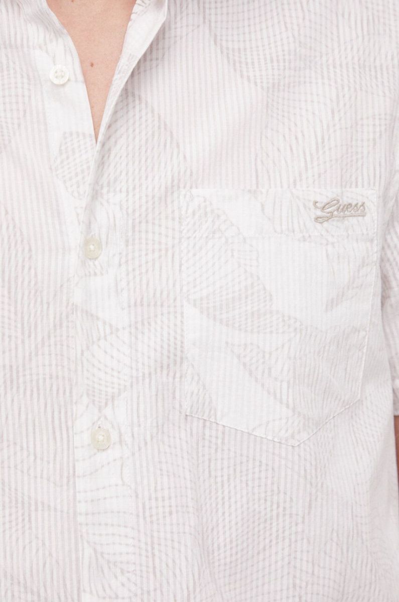 Бавовняна сорочка Guess чоловіча колір бежевий regular класичний комір