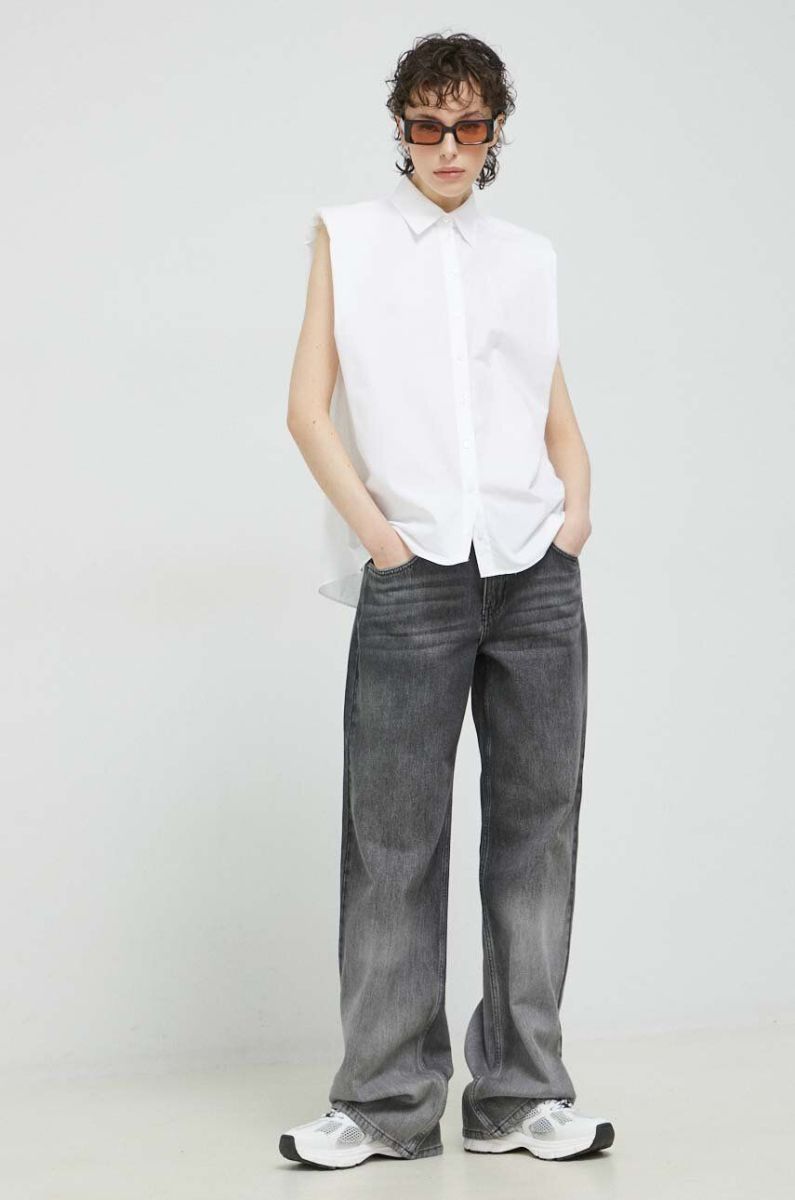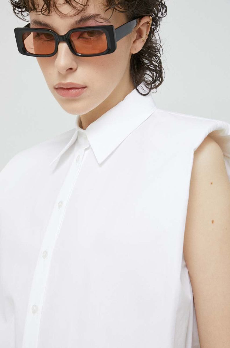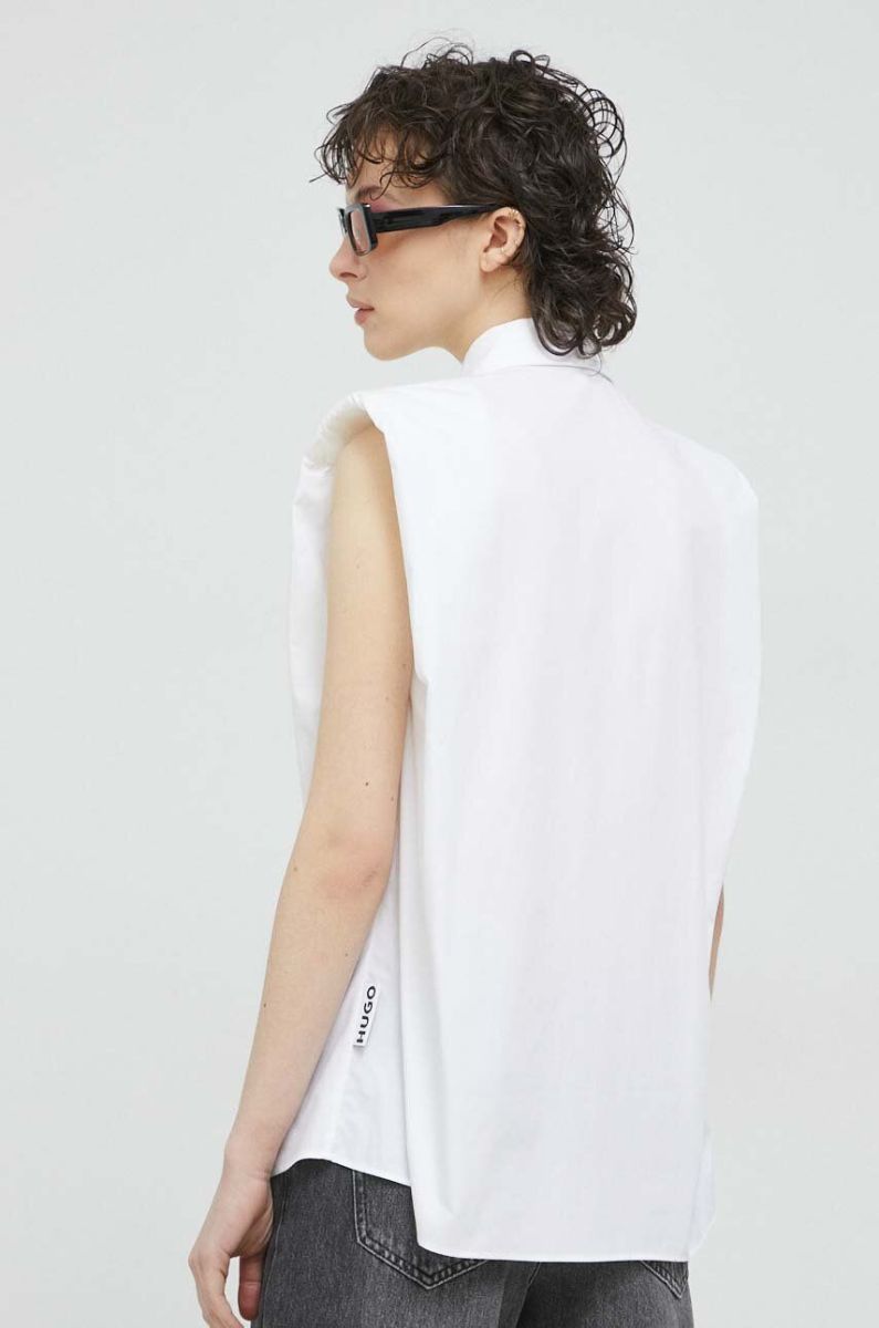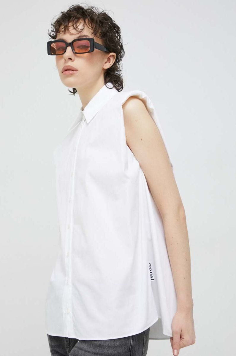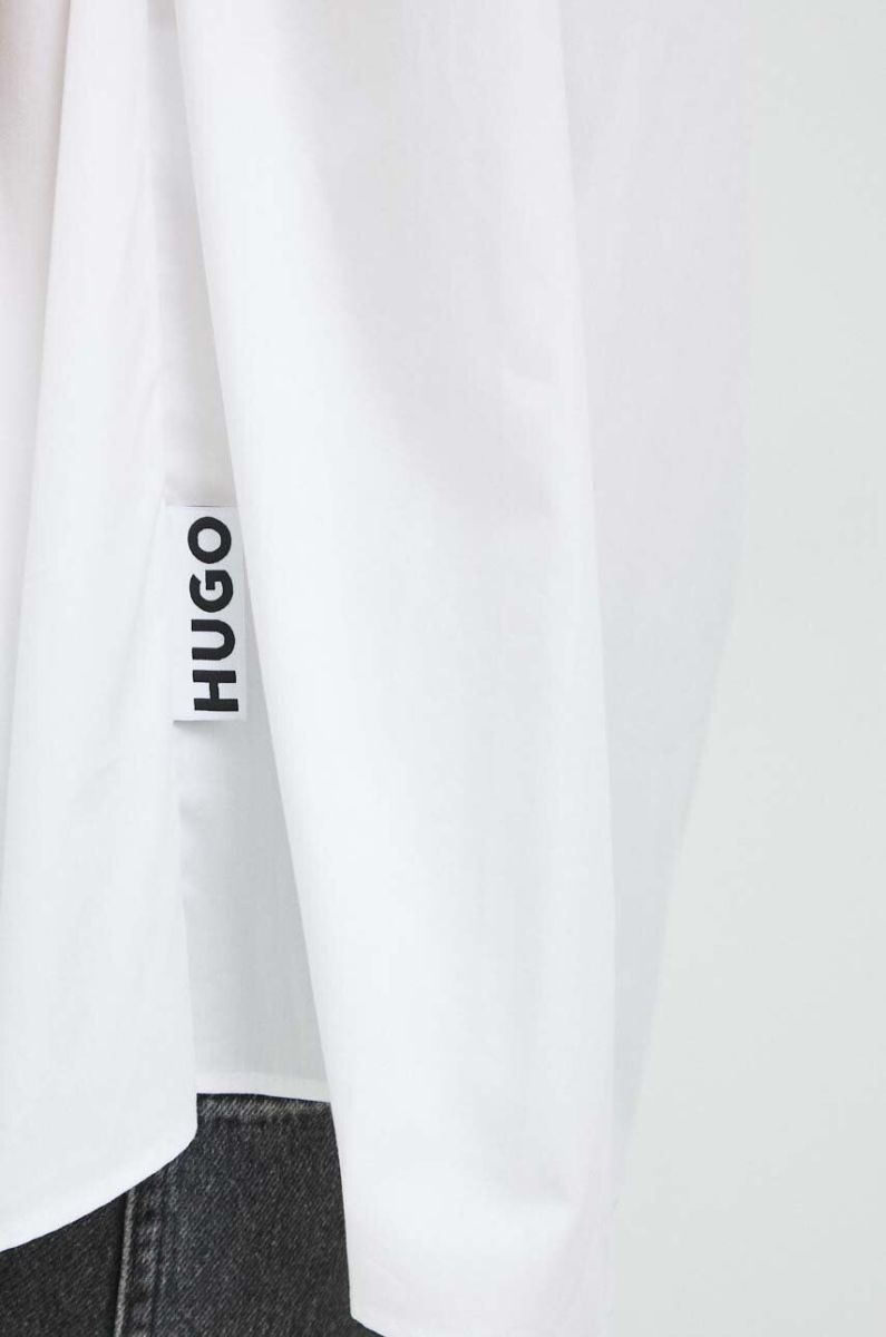 Бавовняна сорочка HUGO жіноча колір білий regular класичний комір